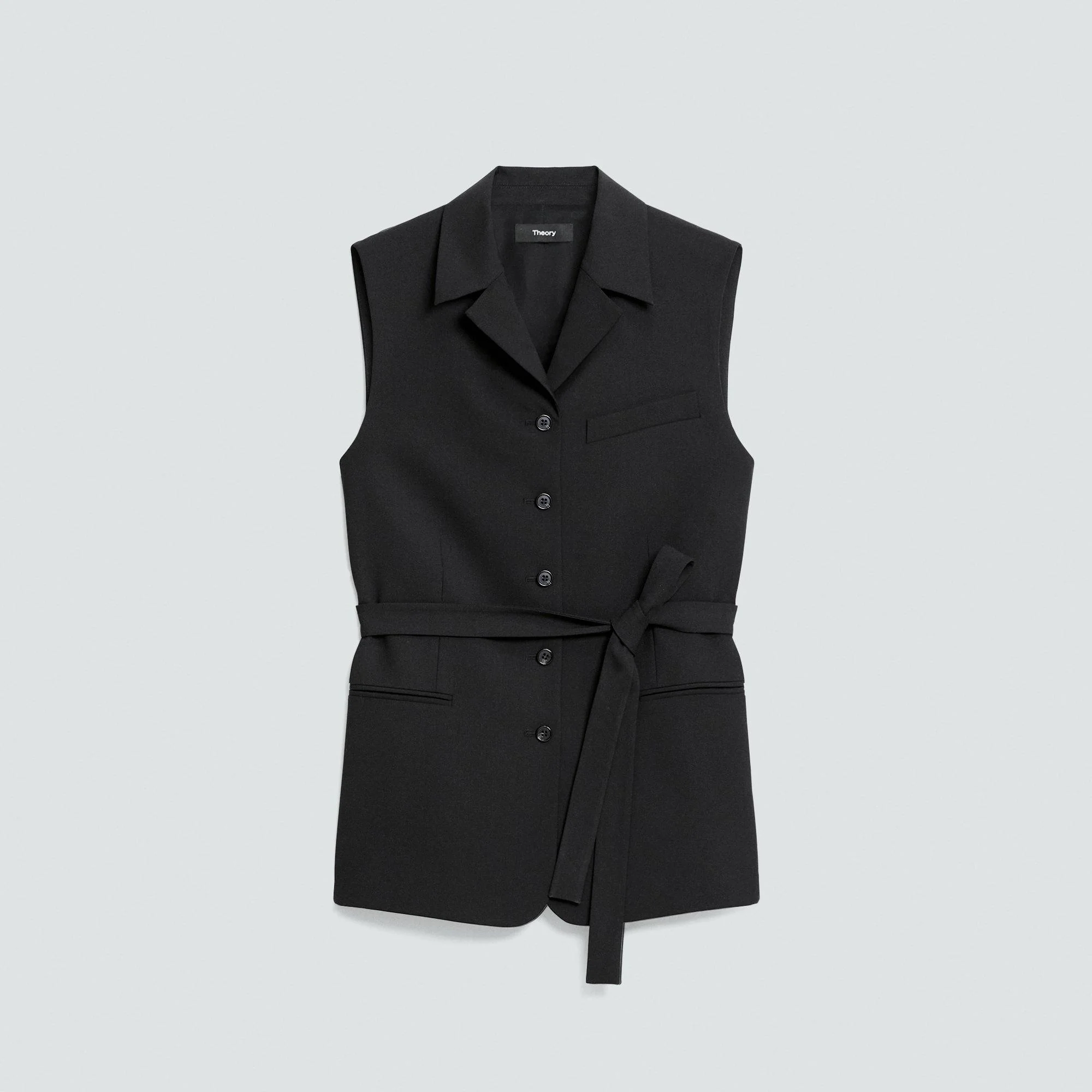 Please enter your email below to be notified when this item is in stock Tailored for a slim fit, this cropped, fully lined vest overlaps at the front with a hook-and-eye closure for the look of a double-breasted silhouette. It's crafted with extremely fine Good Wool for a soft-hand feel and beautiful drape. Theory for Good Theory’s Good Wool is crafted with premium merino wool. It’s sourced from certified responsibly managed farms in Australia, and woven by the Tollegno 1900 mill in Biella, Italy. Learn more about our Good Wool. Style #: P0701102 Please enter your email below to be notified when this item is in stock Fit True to size, choose your normal size Short length Model is 5’11” and wearing a US size 2 Materials & Care Composition 96% wool 4% elastane Care Do not wash. Do not bleach. Do not tumble dry. Cool iron if needed. Dry clean with any solvent except trichloroethylene. Imported