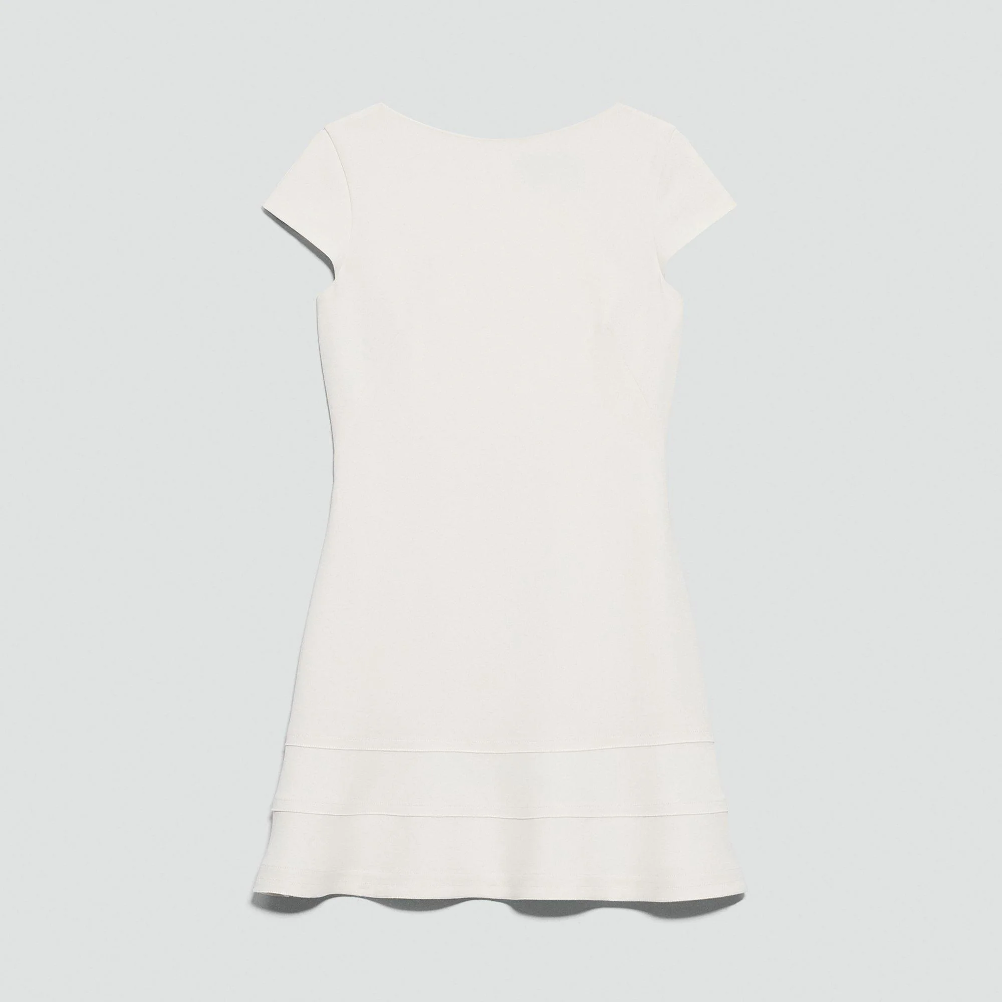Please enter your email below to be notified when this item is in stock Falling along a subtle A-line with flared tiers, this mini dress is cut with a boat neckline and set with cap sleeves. Finished up the back with an invisible zip closure, it’s crafted from our signature Japanese crepe for a softly draped fit that maintains a polished appearance. Style #: Q0109604 Please enter your email below to be notified when this item is in stock Materials & Care Composition 70% triacetate 30% polyester Care Do not wash. Do not bleach. Do not tumble dry. Cool iron if needed. Dry clean with any solvent except trichloroethylene. Imported