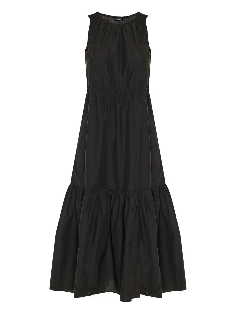tiered smocked midi dress Highlights - Black - Smocked bodice - Sleeveless - Crew neck - Tiered skirt - Midi length Imported Composition Cotton 68%, Recycled Nylon 32% Washing instructions Read Manufacturer Guidelines