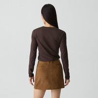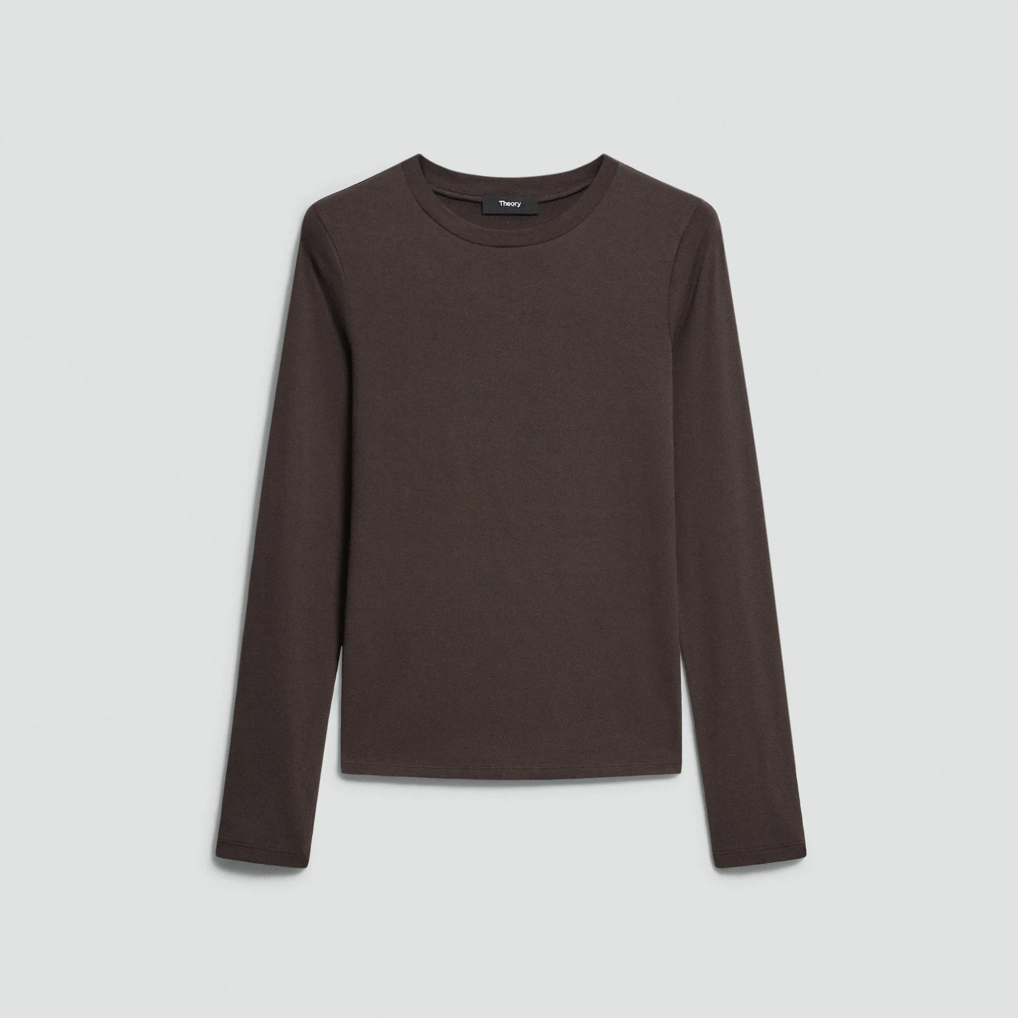 Please enter your email below to be notified when this item is in stock This long-sleeve tee is an everyday style with a bound crew neckline and double-needle topstitching along the sleeves and hem. Close-fitting enough to wear under a blazer, this shirt is crafted from ultra-soft organic Pima cotton jersey that’s knit and dyed in Peru. Style #: L1024522 Please enter your email below to be notified when this item is in stock Fit True to size, choose your normal size Fitted with intention, long sleeves Short length Model is 5’11” and wearing a US size S Materials & Care Composition 100% organic pima cotton Care Machine wash cold, gentle cycle, with similar colors. Do not bleach. Do not tumble dry, lay flat to dry in shade. Cool iron if needed. Do not dry clean. Imported