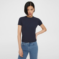 Please enter your email below to be notified when this item is in stock This short-sleeve tee is an everyday style with a bound crew neckline and double-needle topstitching along the sleeves and hem. Close-fitting enough to wear under a blazer, this shirt is cut in an easy fit from soft, organic cotton that has a heathered finish and subtle texture. Style #: J0224509 Please enter your email below to be notified when this item is in stock Fit Runs small, choose one size larger than normal Fitted with intention, short sleeves Hip length Model is 5’11” and wearing a US size S Materials & Care Composition 100% organic cotton Care Machine wash cold. Tumble dry low. Cool iron if needed. Do not bleach or dry clean.