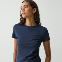 This fitted short-sleeve tee is an everyday style with a bound crew neckline and double-needle topstitching along the sleeves and hem. Close-fitting enough to wear under a blazer, this tee is crafted from ultra-soft organic Pima cotton jersey that’s knit and dyed in Peru. Style #: L1024521 Fit Runs small, choose one size larger than normal Fitted with intention, short sleeves Hip length Model is 5’11” and wearing a US size S Materials & Care Composition 100% pima cotton Care Machine wash cold, gentle cycle, with similar colors. Do not bleach. Tumble dry low. Cool iron if needed. Do not dry clean. Imported
