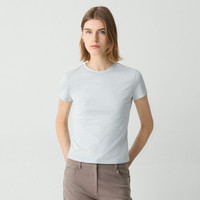 This fitted short-sleeve tee is an everyday style with a bound crew neckline and double-needle topstitching along the sleeves and hem. Close-fitting enough to wear under a blazer, this tee is crafted from ultra-soft organic Pima cotton jersey that’s knit and dyed in Peru. Style #: L1024521 Fit Runs small, choose one size larger than normal Fitted with intention, short sleeves Hip length Model is 5’11” and wearing a US size S Materials & Care Composition 100% pima cotton Care Machine wash cold, gentle cycle, with similar colors. Do not bleach. Tumble dry low. Cool iron if needed. Do not dry clean. Imported