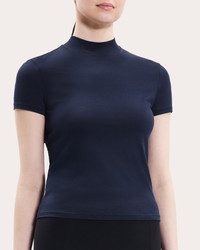A true transitional knit, this cropped turtleneck tee is tailored with a slim fit for effortless layering. The organic cotton silhouette features a ribbed collar and double-needle topstitch details along the sleeves and hem. Pull-on Ribbed turtleneck Double-needle topstitch trim Knit 100% organic Pima cotton Machine wash cold, tumble dry low Made in Peru Size & Fit Model (wearing size S): 5ft 11in tall This style runs small. We recommend ordering one size up. Size P (XS): 31-32in bust, 24.5-25.5in waist, 34.25-35.25in hips Size S: 33-34in bust, 26.5-27.5in waist, 36.25-37.25in hips Size M: 35-36in bust, 28.5-29.5in waist, 38.25-39.25in hips Size L: 37.5-39in bust, 31-32.5in waist, 40.75-42.25in hips Size XL: 40.5-42in bust, 34-35.5in waist, 43.75-45.25in hips Please note, above measurements reflect Theory's size chart, not the actual garment. Sustainability Metrics: Natural Resources: at least 50% of materials used are produced with a reduced environmental impact Read more about Olivela's sustainability pillars here .