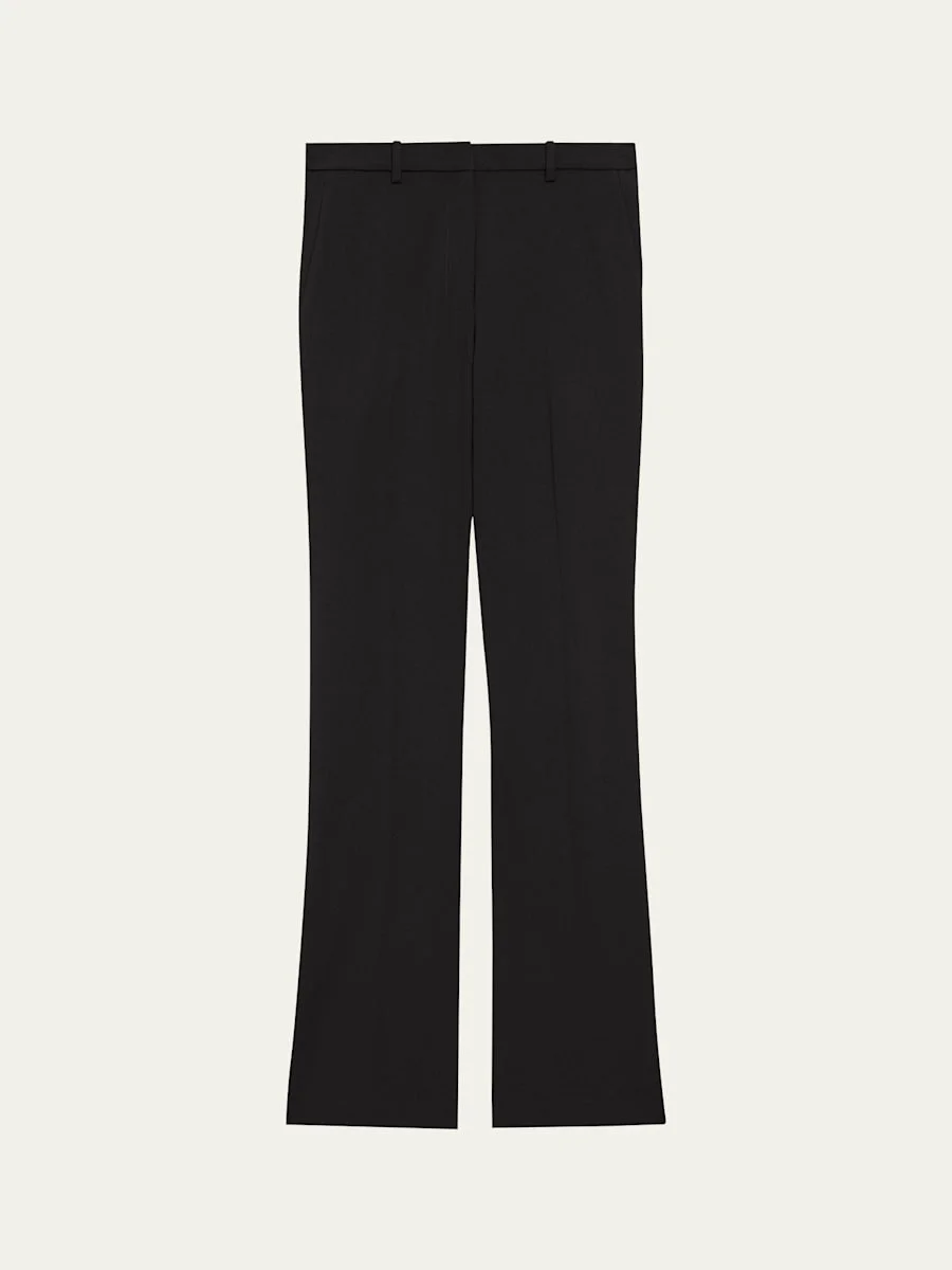 Theory slim trousers with a clean front and belt loops Mid rise Front slash pockets, back welt pockets Full length Straight legs Hook and bar; zip fly Wool/elastane Dry clean Imported Online Inquiries: BGS21_T5RMK| Store Inquiries: #4798981