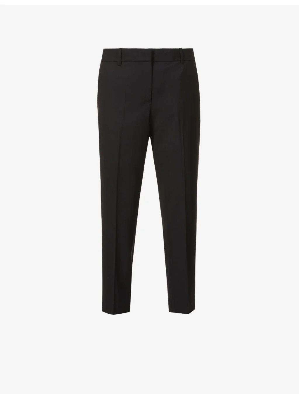 PRODUCT DETAILS - Theory stretch-wool trousers - 96% wool, 4% elastane - Concealed hook-and-eye, button and zip-fly fastenings at front - Regular fit, mid-rise, tapered leg, belt loops, slip pockets at sides, darts at back, welt pockets at back, pressed centre creases at front and back, cropped - Dry clean - True to size - Size UK 8: Rise 10in / 26cm, inside leg 25in / 64cm, leg opening 14in / 36cm - Model is 5ft 10in/1.78m and wears a size UK 8 - Lightweight, slight stretch