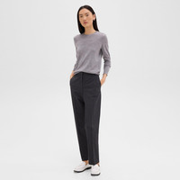 A distinguished Theory favorite, this full-length pant is tailored in our best-selling Treeca fit, which flatters the leg with a slim-cut profile. It’s detailed with a hook-and-zip closure, side slip pockets, and a back welt pocket. Wear it with or without the matching Carissa blazer. Theory for Good We are committed to making a positive impact on the people who wear our clothes, our industry, and our planet, beginning with our Good fabrics. Consciously manufactured from start to finish, our Good Wool is crafted with premium merino wool. It’s sourced from farms in Australia, including the Beaufront farm in Tasmania and woven by the Tollegno 1900 mill in Biella, Italy. Learn more about our Good Wool. Style #: J0701214 Fit Runs large, we recommend sizing down for a more tailored look Mid rise, slim leg Full length Model is 5’11” and wearing a US size 2 Materials & Care Composition 96% wool 4% elastane Care Do not wash. Do not bleach. Do not tumble dry. Cool iron if needed. Dry clean with any solvent except trichloroethylene. Imported