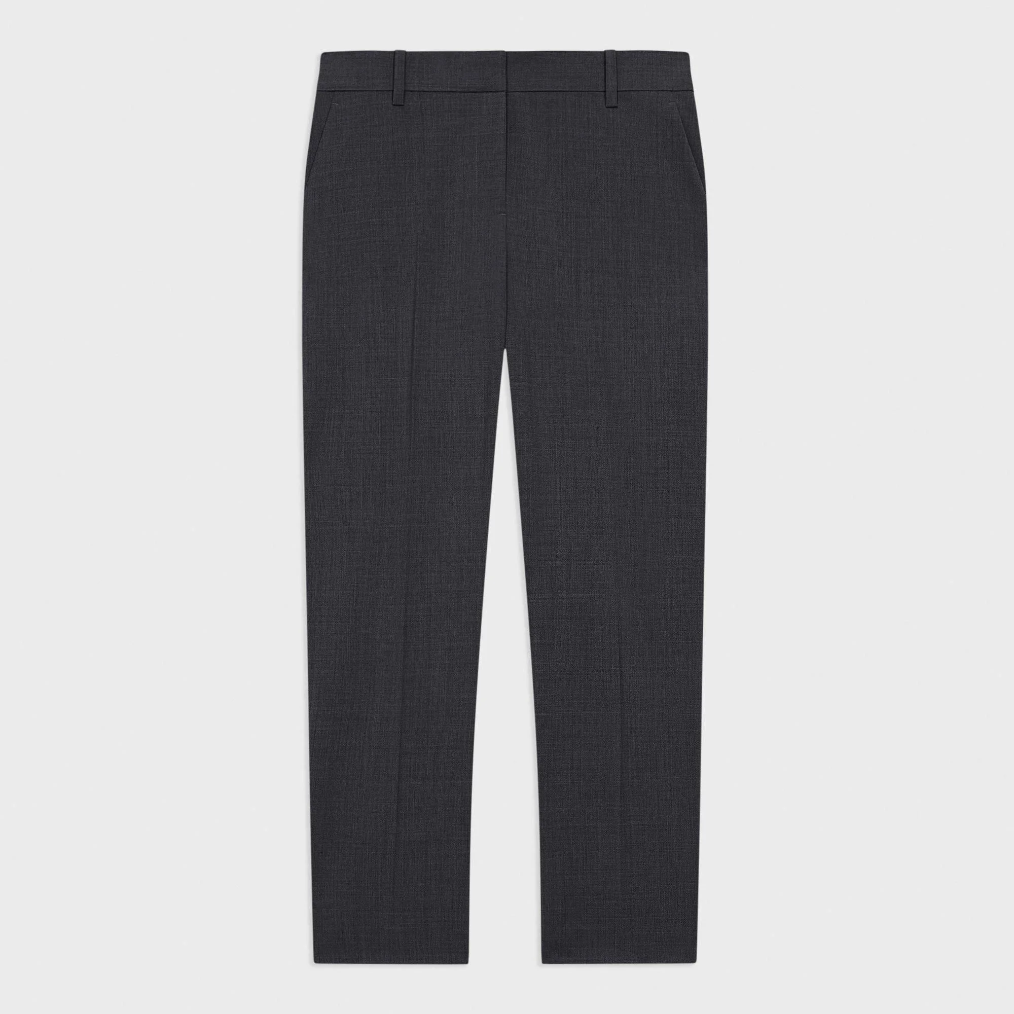 A distinguished Theory favorite, this cropped pant is tailored in our best-selling Treeca fit, which flatters the leg with a slim-straight cut profile. It’s detailed with a hook-and-zip closure, side slip pockets, and buttoned welt pockets at the back. Theory for Good We are committed to making a positive impact on the people who wear our clothes, our industry, and our planet, beginning with our Good fabrics. Consciously manufactured from start to finish, our Good Wool is crafted with premium merino wool. It’s sourced from farms in Australia, including the Beaufront farm in Tasmania and woven by the Tollegno 1900 mill in Biella, Italy. Learn more about our Good Wool. Style #: H0101234 Fit True to size, choose your normal size Mid rise, slim-straight leg Cropped length Model is 5'11" and wearing a US size 2 Materials & Care Composition 96% wool 4% elastane Care Do not wash. Do not bleach. Do not tumble dry. Cool iron if needed. Dry clean with any solvent except trichloroethylene. Imported