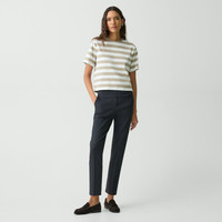 An evolution of our best-selling cropped Treeca pant, this pull-on version is reimagined with an elastic waistband and mock fly for an effortless approach to tailoring. It's designed in a slim-straight fit and crafted from lightweight Good Linen enhanced with stretch for easy movement. Theory for Good We are committed to making a positive impact on the people who wear our clothes, our industry, and our planet, beginning with our Good Collection fabrics. Woven by the Marini & Cecconi Mill in Prato, Italy, Good Linen is our signature stretch linen fabric, made up of three fibers—flax sourced from France, viscose made from repurposed waste cotton fibers, and recycled elastane for stretch. Learn more about our Good Linen. Style #: K0203201 Fit True to size, choose your normal size Mid rise, slim-straight leg Cropped length Model is 5’11” and wearing a US size 2 Materials & Care Composition 62% linen 36% viscose 2% elastane Care Do not wash. Do not bleach. Do not tumble dry. Cool iron if needed. Dry clean with any solvent except trichloroethylene. Imported