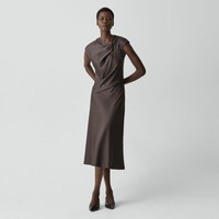 Please enter your email below to be notified when this item is in stock An asymmetrical neckline and twisted bodice define this midi dress. Secured with a back zip closure, it features cap sleeves and a flared hem. It’s crafted in a drapey Japanese double satin that’s woven with triacetate, a fabric made from acetic acid and wood pulp sourced from certified responsibly managed forests. Style #: P1009607 Please enter your email below to be notified when this item is in stock Fit True to size, choose your normal size Fit-and-flare silhouette, cap sleeves Midi length Model is 5’11” and wearing a US size 2 Materials & Care Composition 87% triacetate 13% polyester Care Do not wash. Do not bleach. Do not tumble dry. Cool iron with press cloth if needed. Dry clean with any solvent except trichloroethylene. Imported