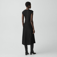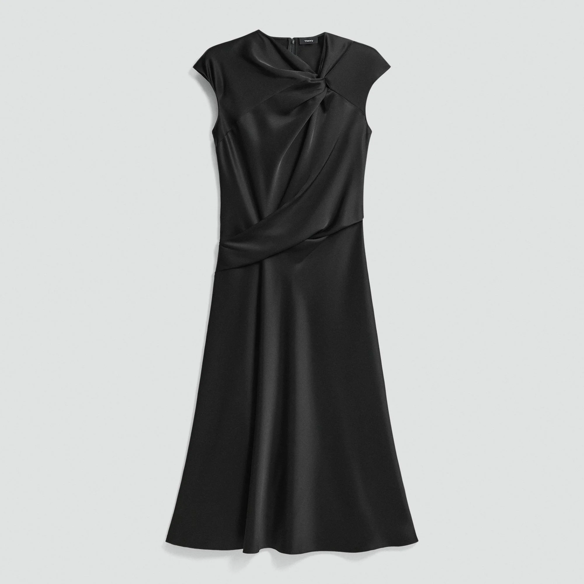 Please enter your email below to be notified when this item is in stock An asymmetrical neckline and twisted bodice define this midi dress. Secured with a back zip closure, it features cap sleeves and a flared hem. It’s crafted in a drapey Japanese double satin that’s woven with triacetate, a fabric made from acetic acid and wood pulp sourced from certified responsibly managed forests. Style #: P1009607 Please enter your email below to be notified when this item is in stock Fit True to size, choose your normal size Fit-and-flare silhouette, cap sleeves Midi length Model is 5’11” and wearing a US size 2 Materials & Care Composition 87% triacetate 13% polyester Care Do not wash. Do not bleach. Do not tumble dry. Cool iron with press cloth if needed. Dry clean with any solvent except trichloroethylene. Imported