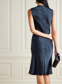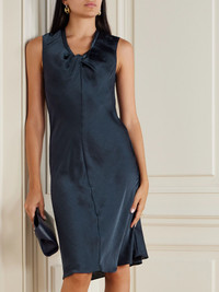 Twist Scoop recycled-satin dress Navy
