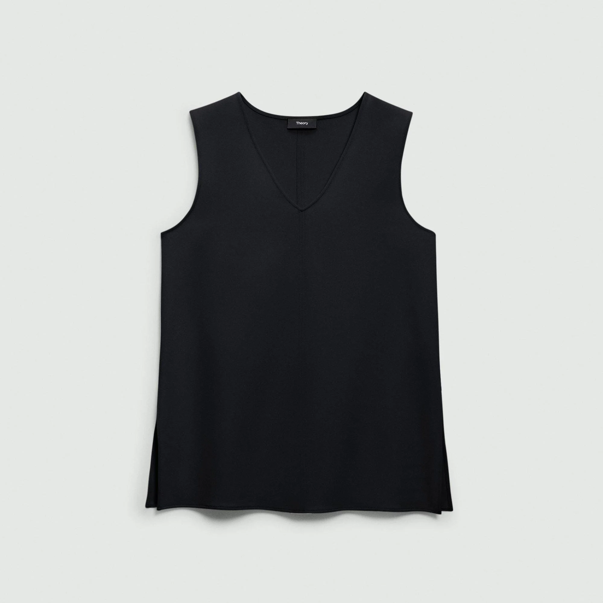 Our sleeveless V-neck blouse is cut for an easy, relaxed fit. It is made from our signature Japanese Admiral Crepe for a smooth and softly draped fit that maintains a polished appearance. Our signature crepe is woven with triacetate, a fabric made of wood pulp sourced from certified responsibly managed forests. Style #: P0209518 Fit True to size, choose your normal size Relaxed fit, sleeveless Hip length Model is 5’11” and wearing a US size S Materials & Care Composition 70% triacetate 30% polyester Care Machine wash cold, gentle cycle, wash inside out. Do not bleach. Hang to dry in shade, do not tumble dry. Cool iron if needed. Dry clean with any solvent except trichloroethylene. Imported