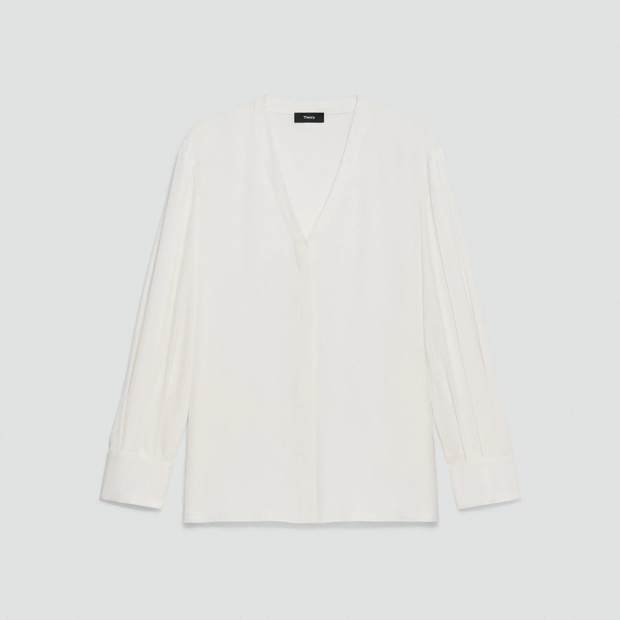 Please enter your email below to be notified when this item is in stock Defined by a sharp V-neckline, this blouse offers a relaxed fit with dropped shoulders. It’s detailed with long, voluminous sleeves, button cuffs, and hidden button-front closures. Cut from airy silk georgette, it’s a style that feels as weightless as it looks. Our silk georgette is MADE IN GREEN by OEKO-TEX® certified. All products with this certification are made without harmful chemicals, in environmentally and socially responsible facilities. Each component of the garment, the factory, and the mill have been certified by OEKO-TEX®. Style #: Q0102515 Please enter your email below to be notified when this item is in stock Fit True to size, choose your normal size Relaxed fit, long sleeves Model is 5’11” and wearing a US size S Materials & Care
