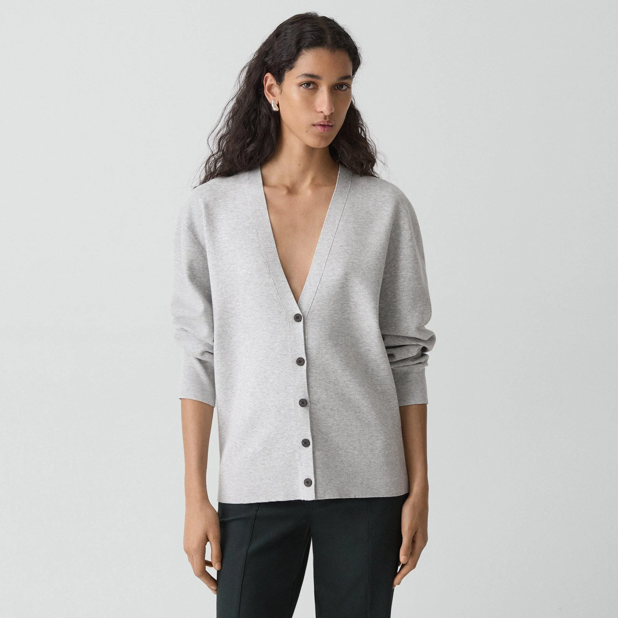 Please enter your email below to be notified when this item is in stock This oversized cardigan features a V-neckline, dropped shoulders, and ribbed trim. Buttoned up the front, it can be worn solo or as a light layer. It’s crafted with a lightweight stretch knit using viscose made with wool pulp sourced from certified responsibly managed forests. It has a comfortable, technical feel and strong shape retention. The fabric’s versatility allows for dressing this style up or down. Style #: Q0116720 Please enter your email below to be notified when this item is in stock Fit True to size, choose your normal size Oversized fit, long sleeves Model is 5’11” and wearing a US size S Materials & Care