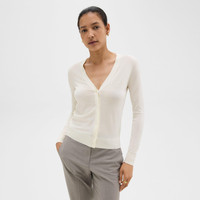Expertly knit in Italy with fine-gauge merino wool, this luxurious button-front cardigan feels as luxurious as it looks. Designed to be the foundation of your wardrobe, it's cut for a flattering slim fit with a V-neckline and ribbed trim. We are committed to making a positive impact on the people who wear our clothes, our industry, and our planet, beginning with our Good fabrics. This wool is traceable to the Congi farm in Woolbrook, Australia, and is consciously spun by the Botto Giuseppe mill in Biella, Italy. Style #: I1211704 Fit True to size, choose your normal size Slim fit, long sleeves Hip length Model is 5’10” and wearing a US size S Materials & Care Composition 100% wool; exclusive of elastic Care Hand wash cold. Do not bleach. Lay flat to dry in shade, do not tumble dry. Cool iron if needed. Dry clean with any solvent except trichloroethylene. Imported