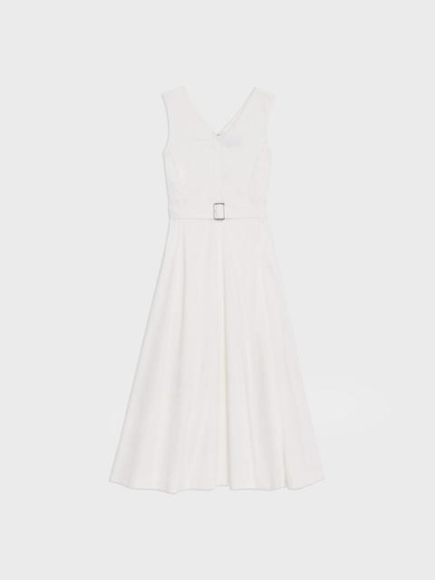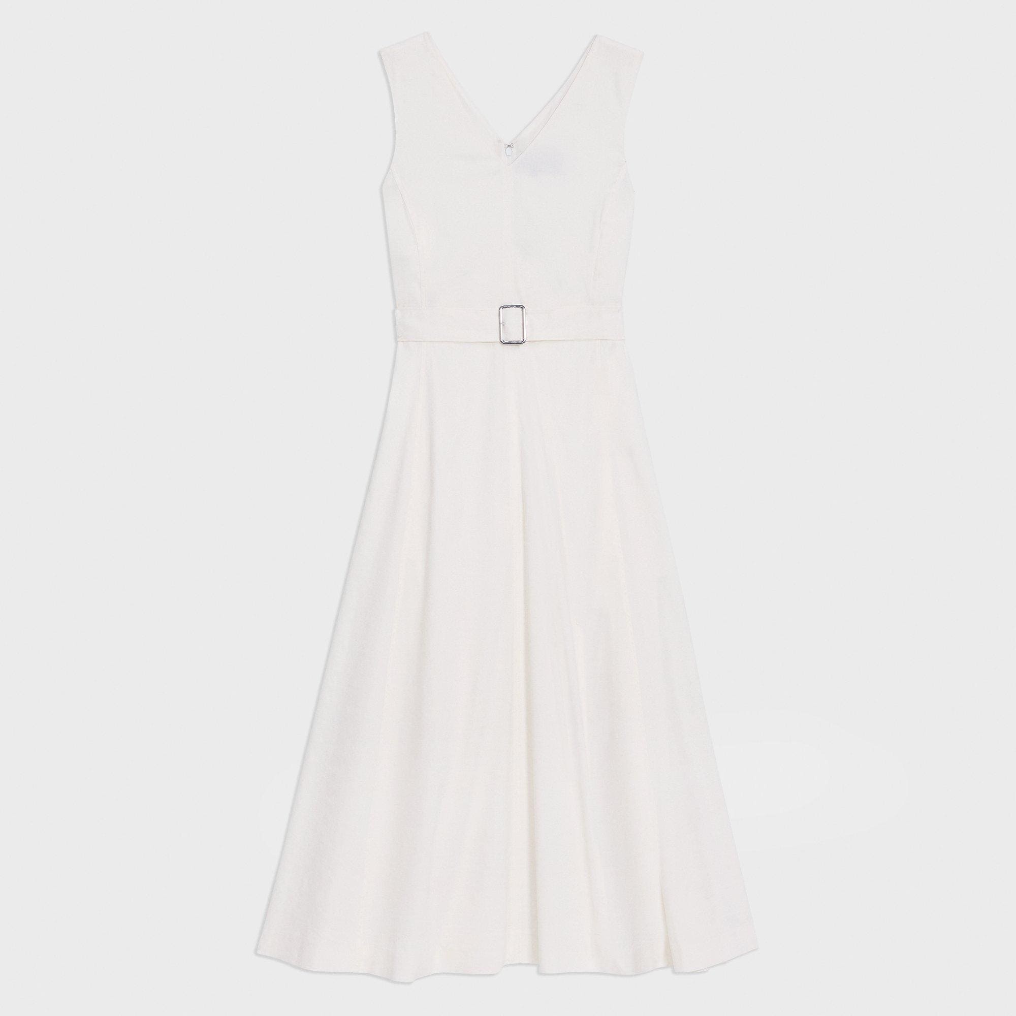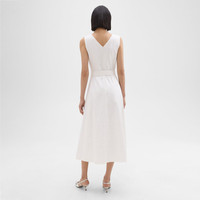 Belted to achieve a voluminous fit-and-flare silhouette, this maxi dress is cut along a V-neck. Crafted from our signature stretch Good Linen fabric, this sleeveless style is a warm-weather everyday favorite. Theory for Good We are committed to making a positive impact on the people who wear our clothes, our industry, and our planet, beginning with our Good Collection fabrics. Woven by the Marini & Cecconi Mill in Prato, Italy, Good Linen is our signature stretch linen fabric, made up of three fibers—flax sourced from France, viscose made from repurposed waste cotton fibers, and recycled elastane for stretch. Learn more about our Good Linen. Style #: O0203613 Fit True to size, choose your normal size Fit-and-flare silhouette, sleeveless Maxi length Model is 5’11” and wearing a US size 2 Materials & Care Composition 66% linen 30% viscose 4% elastane Care Do not wash. Do not bleach. Do not tumble dry. Cool iron if needed. Dry clean with any solvent except trichloroethylene. Imported