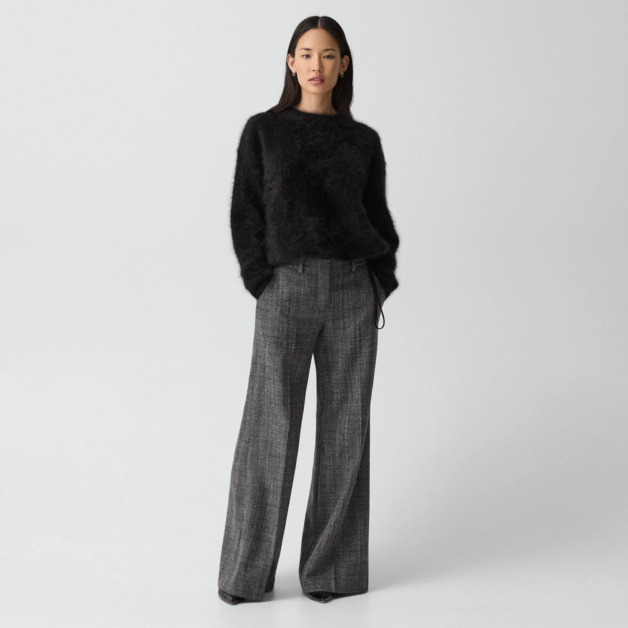 Please enter your email below to be notified when this item is in stock This wide-leg pant features a mid-rise fit and fluid drape that moves with ease. It’s tailored with subtle structure through the waistband with soft creasing creased for a refined finish. Made in Italy, the fabric is crafted using wool that is sourced from certified responsibly managed farms. Style #: P1101204 Please enter your email below to be notified when this item is in stock Fit True to size, choose your normal size Mid rise, wide leg Full length Model is 5’11” and wearing a US size 2 Materials & Care Composition 83% virgin wool 17% polyamide Care Do not wash. Do not bleach. Do not tumble dry. Cool iron if needed. Dry clean with any solvent except trichloroethylene. Imported