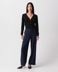 This pull-on pant offers an uncomplicated take on tailoring in a fluid, wide-leg silhouette, crafted with our signature Japanese crepe for smooth, wrinkle-resistance and has a softly draped fit that maintains a polished appearance. Detailed with on-seam pockets and a back welt pocket, it’s a versatile counterpart to tanks, tees, shirting, and more. We are committed to positively impacting the people who wear our clothes, our industry, and our planet, beginning with our fabrics. Our signature crepe is woven with triacetate, a fabric made from acetic acid and wood pulp sourced from certified responsibly managed forests. Style #: L0109223 Fit True to size, choose your normal size Mid rise, wide leg Full length Model is 5’11” and wearing a US size 2 Materials & Care Composition 70% triacetate 30% polyester Care Do not wash. Do not bleach. Do not tumble dry. Cool iron if needed. Dry clean with any solvent except trichloroethylene. Imported