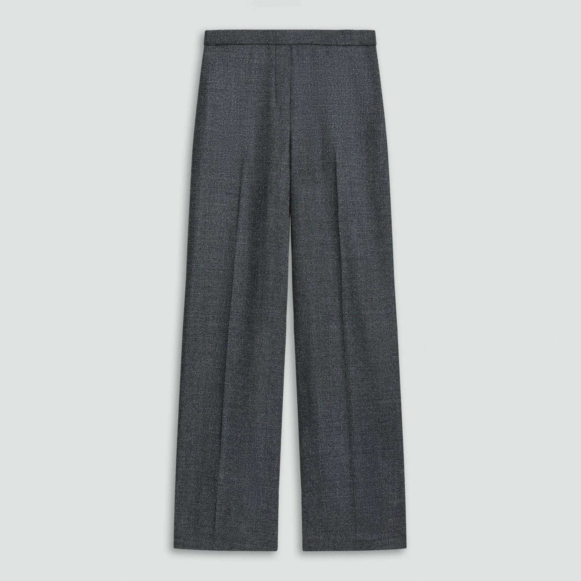 Please enter your email below to be notified when this item is in stock Designed with a flat front and elastic waistband, this pull-on pant combines clean tailoring with a wide-leg silhouette. It features slip pockets and a back welt pocket. It’s cut in Italian marled flannel—a textured wool woven from twisted yarn with a distinct pattern. This wool is traceable to the certified responsibly managed Malahide farm in Tasmania, Australia, and is consciously woven by the Botto Giuseppe mill in Biella, Italy. Style #: P0801219 Please enter your email below to be notified when this item is in stock Fit True to size, choose your normal size High rise, wide leg Full length Model is 5’11” and wearing a US size 2 Materials & Care Composition 100% virgin wool Care Do not wash. Do not bleach. Do not tumble dry. Warm iron if needed. Dry clean with any solvent except trichloroethylene. Imported