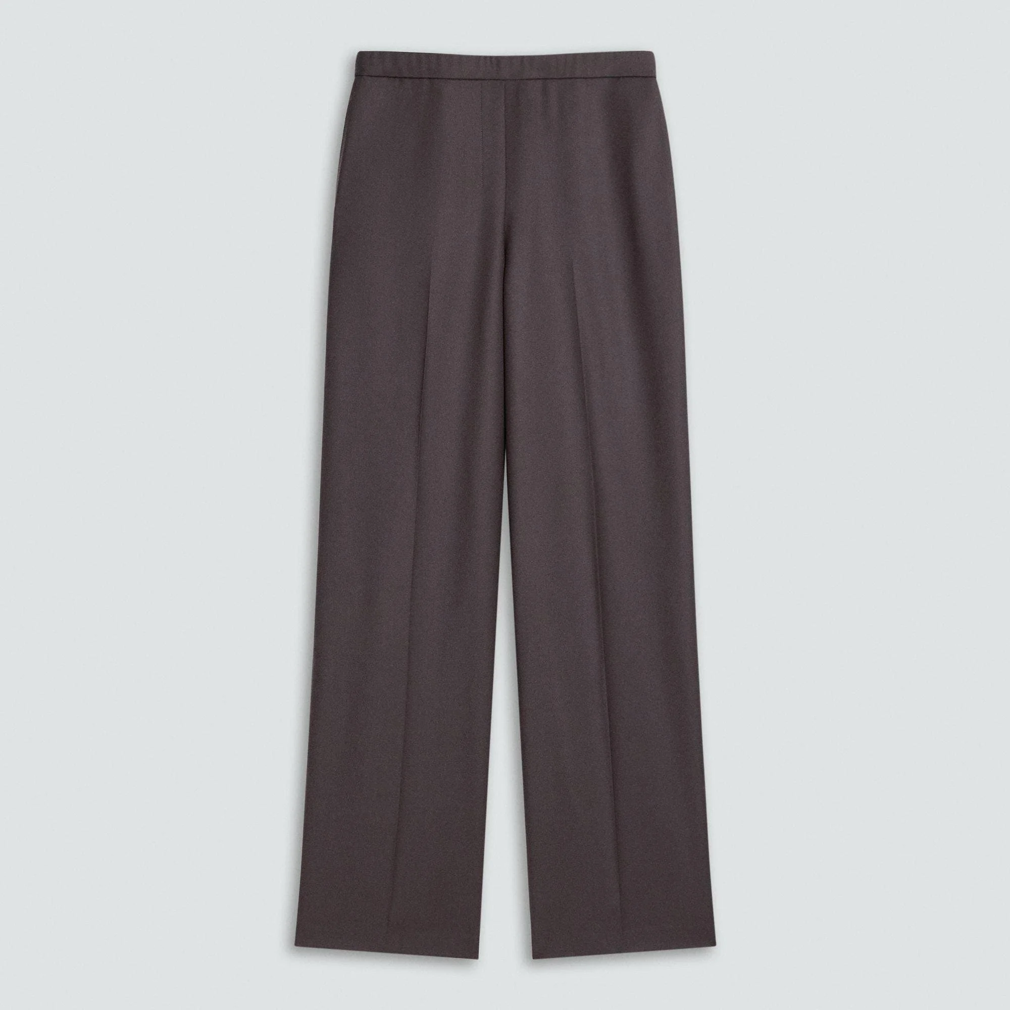 Please enter your email below to be notified when this item is in stock Designed with a creased front and elastic waistband, this pull-on pant combines clean tailoring with a wide-leg silhouette. It features slip pockets and a back welt pocket. It’s crafted from fine Italian wool flannel that’s soft, lightweight and has a sophisticated look. This wool is traceable to the certified responsibly managed Malahide farm in Tasmania, Australia, and is consciously woven by the Botto Giuseppe mill in Biella, Italy. Style #: P0801203 Please enter your email below to be notified when this item is in stock Fit True to size, choose your normal size High rise, wide leg Full length Model is 5’11” and wearing a US size 2 Materials & Care Composition 100% virgin wool Care Do not wash. Do not bleach. Do not tumble dry. Warm iron if needed. Dry clean with any solvent except trichloroethylene. Imported