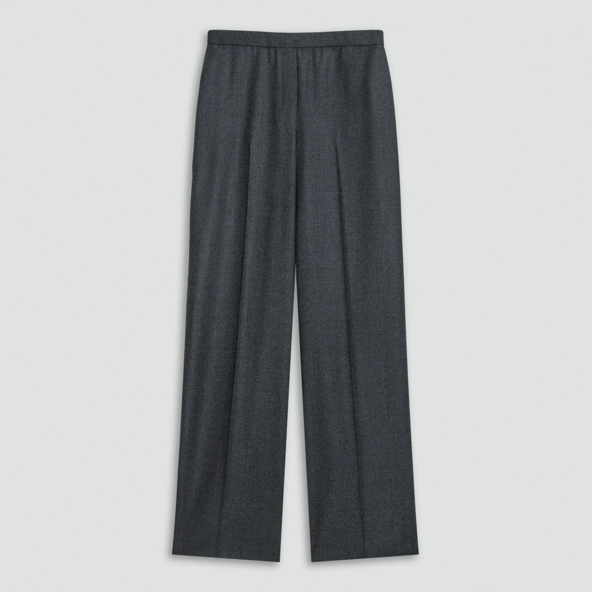 Please enter your email below to be notified when this item is in stock Designed with a creased front and elastic waistband, this pull-on pant combines clean tailoring with a wide-leg silhouette. It features slip pockets and a back welt pocket. It’s crafted from fine Italian wool flannel that’s soft, lightweight and has a sophisticated look. This wool is traceable to the certified responsibly managed Malahide farm in Tasmania, Australia, and is consciously woven by the Botto Giuseppe mill in Biella, Italy. Style #: P0801203 Please enter your email below to be notified when this item is in stock Fit True to size, choose your normal size High rise, wide leg Full length Model is 5’11” and wearing a US size 2 Materials & Care Composition 100% virgin wool Care Do not wash. Do not bleach. Do not tumble dry. Warm iron if needed. Dry clean with any solvent except trichloroethylene. Imported