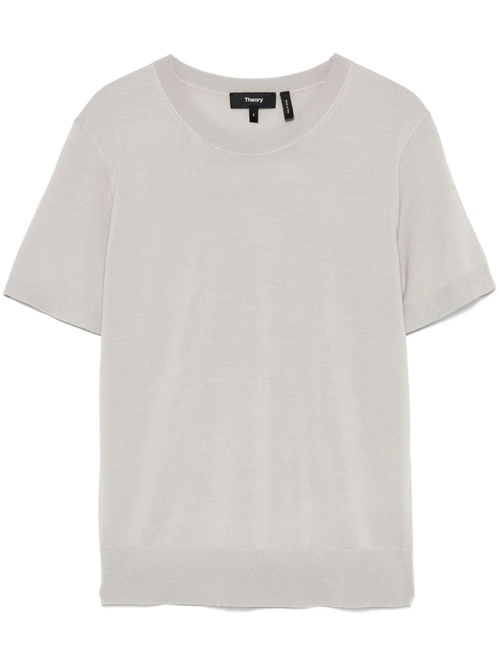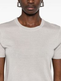 wool T-shirt Highlights - Light grey - Ribbed cuffs and hem - Crew neck - Short sleeves Imported Composition Wool 100% SIZE & FIT Model measurements Height 5 ft 10 in(1.77 m) Bust/Chest 32.28 in(82 cm) Hips 35.03 in(89 cm) Waist 25.19 in(64 cm) FittingInformation Designed to be unstructured, offering a loose fit throughout Made with a midweight knit, this piece offers some stretch Washing instructions Hand Wash