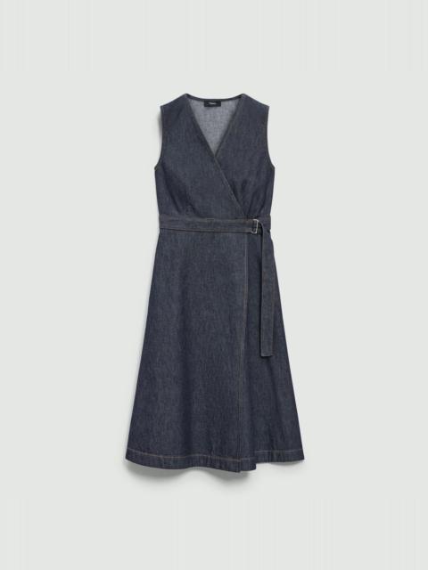 Sleeveless A-Line Wrap Dress in Denim