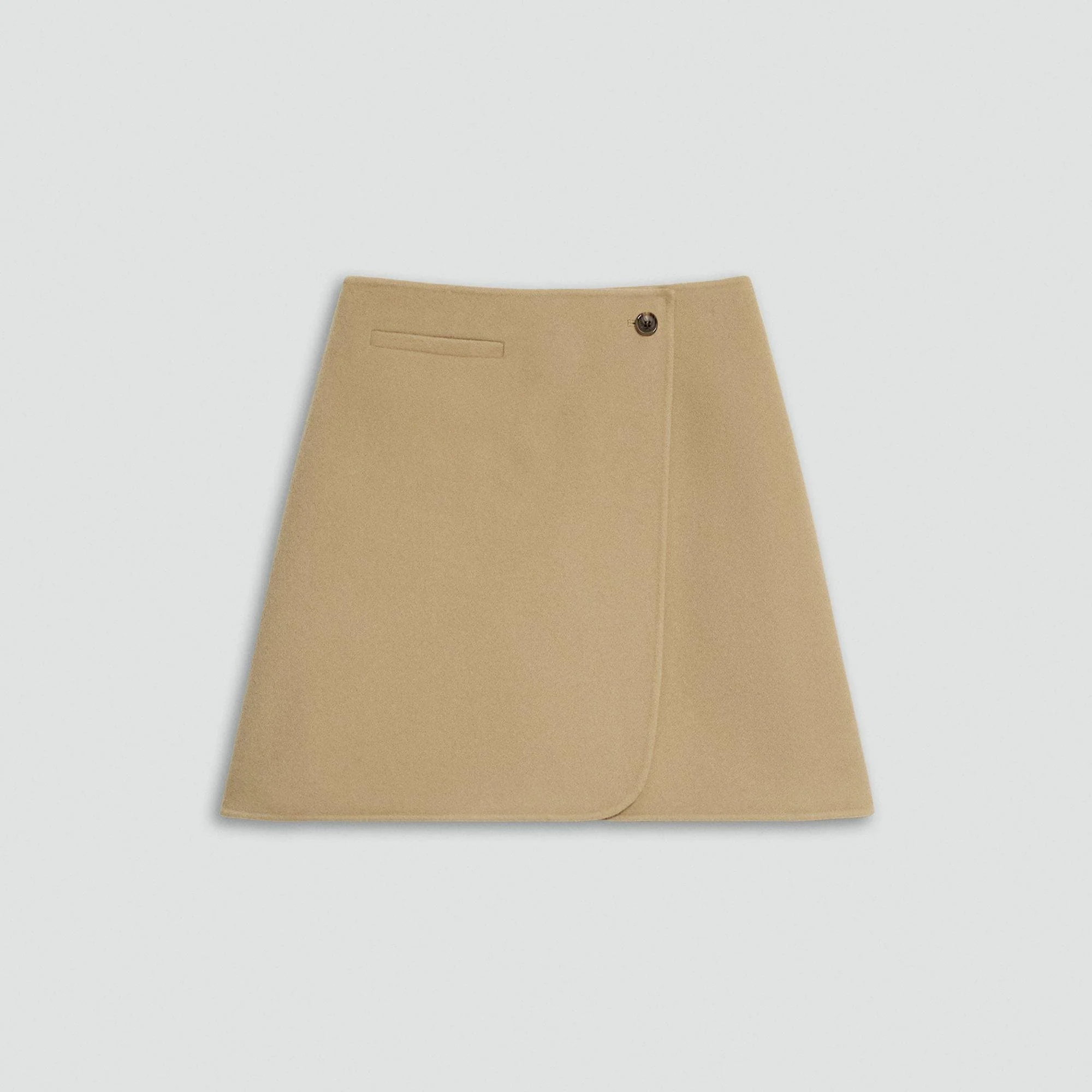 Please enter your email below to be notified when this item is in stock A sharp approach to the mini, this skirt is cut in a wrap silhouette with a subtle overlap secured at the waist. It’s designed to sit neatly against the body while offering ease of movement. Crafted in double-face wool-cashmere, the fabric is warm yet lightweight. Double-face fabrics are created through a special weaving process that joins two layers of a material. Due to their unique construction, double-faced garments are seamed together with special techniques that result in a clean, refined finish. This elevated process—along with the fabric's superior warmth—allows the garments to be unlined. This fabric is made in Italy of both pre- and post-consumer certified responsibly sourced wool and certified recycled cashmere as well as virgin fibers. Style #: P0901303 Please enter your email below to be notified when this item is in stock Fit True to size, choose your normal size High rise, A-line silhouette Mini length Model is 5’11” and wearing a US size 2 Materials & Care Composition 90% wool 10% recycled cashmere Care Do not wash. Do not bleach. Do not tumble dry. Cool iron if needed. Dry clean with any solvent except trichloroethylene. Imported