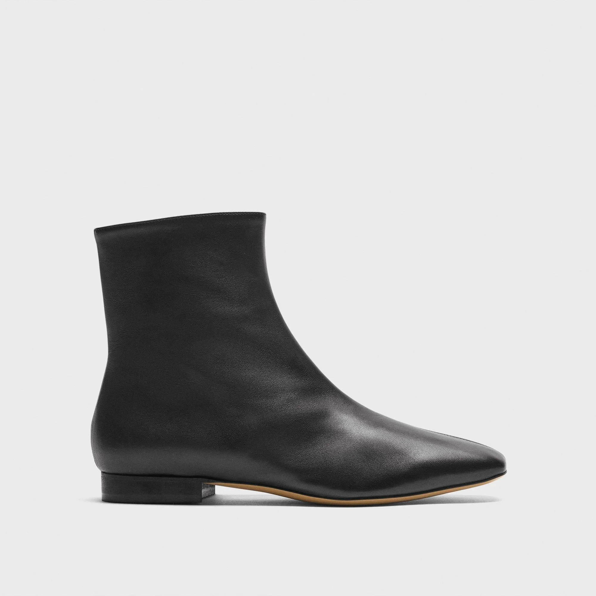 Our ankle bootie is sculpted along a soft square toe in smooth Italian leather with a natural sheen for a modern look. This low-heeled style is zipped along the side to conceal a fully cushioned sock lining with stitch details. We are proud to use sustainable packaging for our footwear. Our shoe box is made from 100% certified recycled fibers from post-consumer waste. Every aspect of this box’s construction is recyclable. From the white paper that wraps the box to the cardboard to the glue that holds it all together. Style #: O07AC021 Fit True to size, choose your normal size If in between sizes, we recommend sizing up 1.5” (25 mm) leather-wrapped block heel Materials & Care Composition 100% lamb leather Care Professional leather clean only. Imported