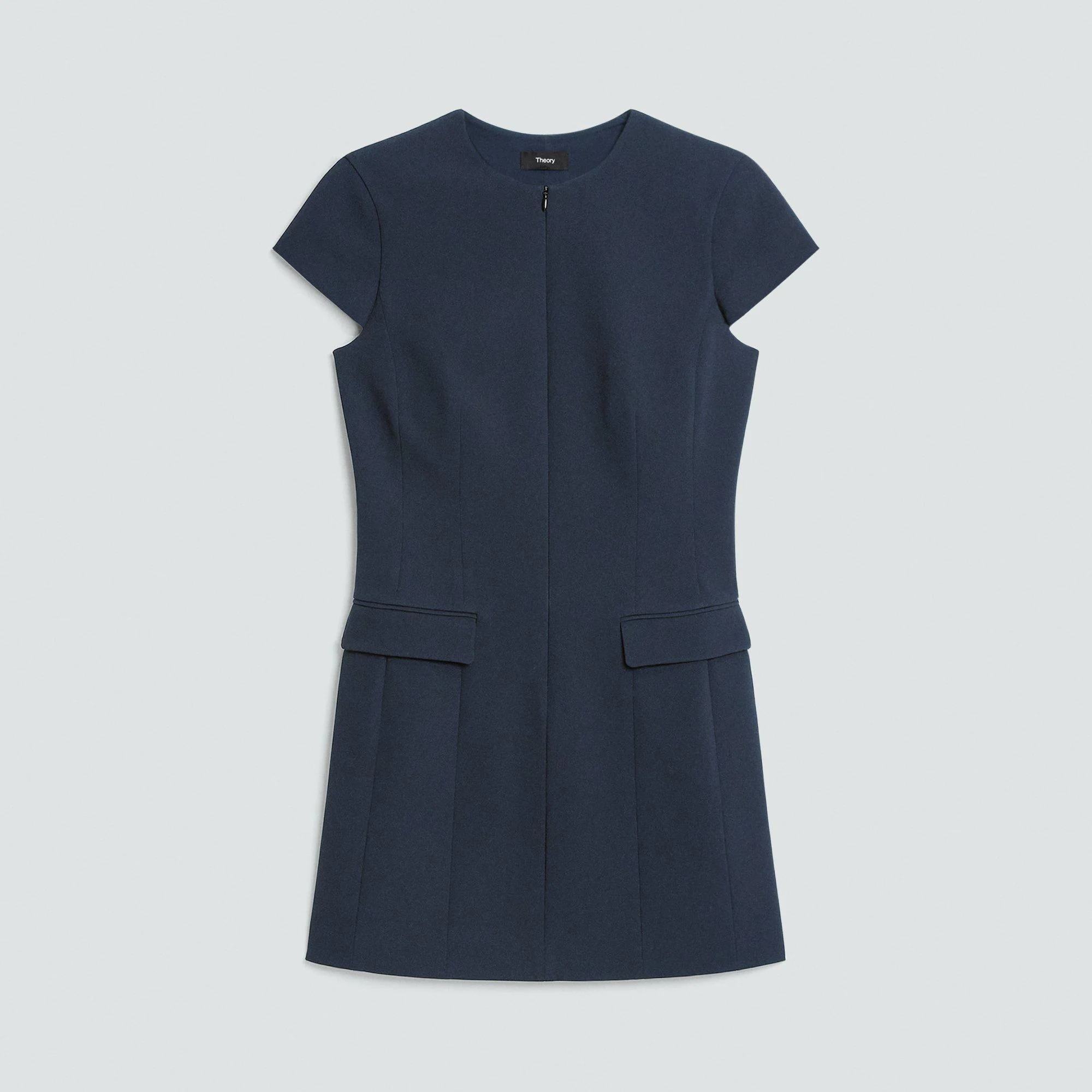 Please enter your email below to be notified when this item is in stock A tailored mini dress with utilitarian edge. This structured style features a zip-front, angled welt pockets, and vertical seams for definition. It’s crafted with Good Wool with a hint of stretch for a relaxed feel. Theory for Good Theory’s Good Wool is crafted with premium merino wool. It’s sourced from certified responsibly managed farms in Australia, and woven by the Tollegno 1900 mill in Biella, Italy. Learn more about our Good Wool. Style #: P0801601 Please enter your email below to be notified when this item is in stock Fit True to size, choose your normal size Slim fit, cap sleeves Mini length Model is 5’11” and wearing a US size 2 Materials & Care Composition 96% wool 4% elastane Care Do not wash. Do not bleach. Do not tumble dry. Cool iron if needed. Dry clean with any solvent except trichloroethylene. Imported