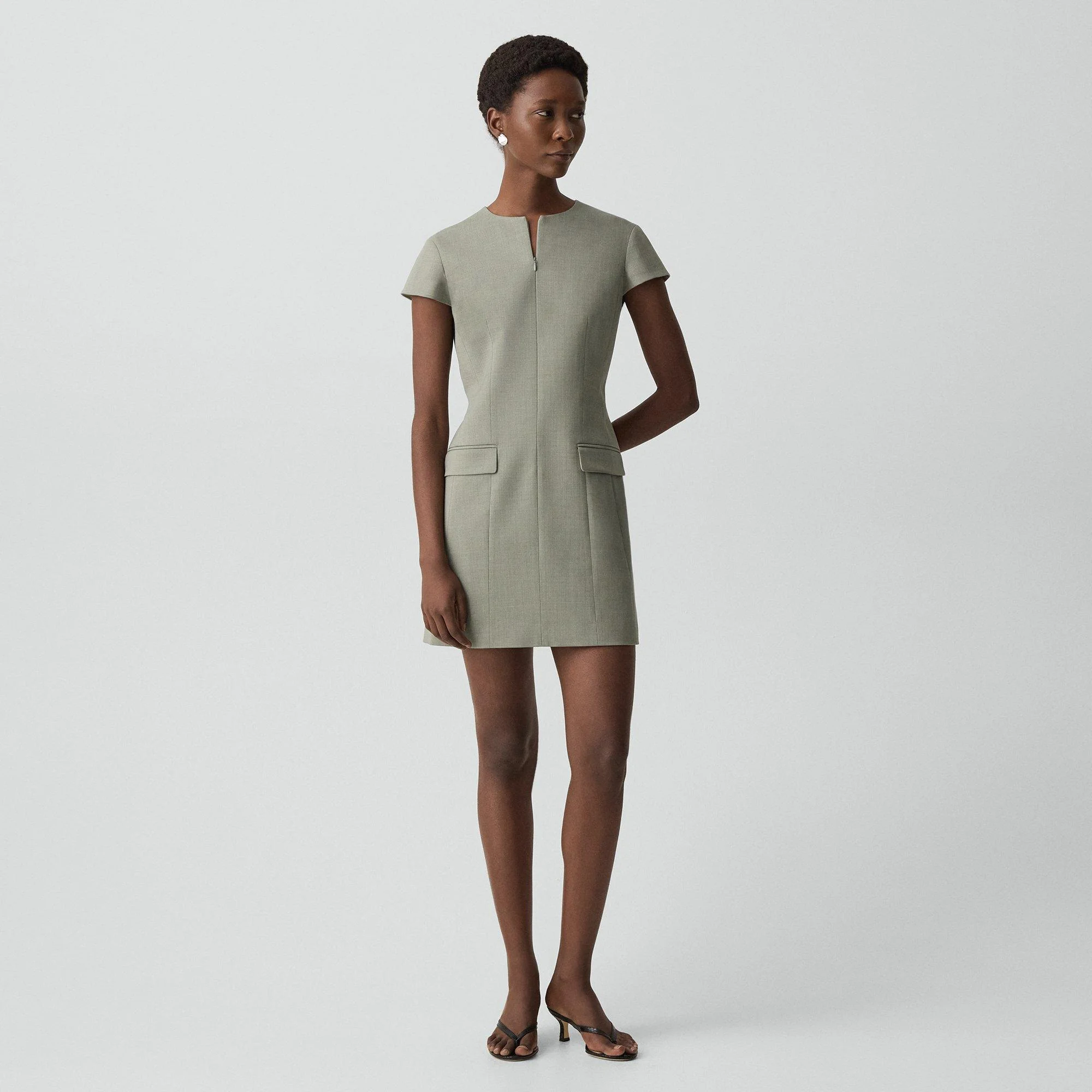 Please enter your email below to be notified when this item is in stock A tailored mini dress with utilitarian edge. This structured style features a zip-front, angled welt pockets, and vertical seams for definition. It's crafted from stretch wool suiting in a gabardine weave produced by the Tollegno 1900 mill in Biella, Italy. The fiber and construction lends a soft hand and beautiful drape. The wool used in this fabric is sourced from certified responsibly managed farms. Style #: Q0101613 Please enter your email below to be notified when this item is in stock Fit True to size, choose your normal size Slim fit, cap sleeves Model is 5’11” and wearing a US size 2 Materials & Care