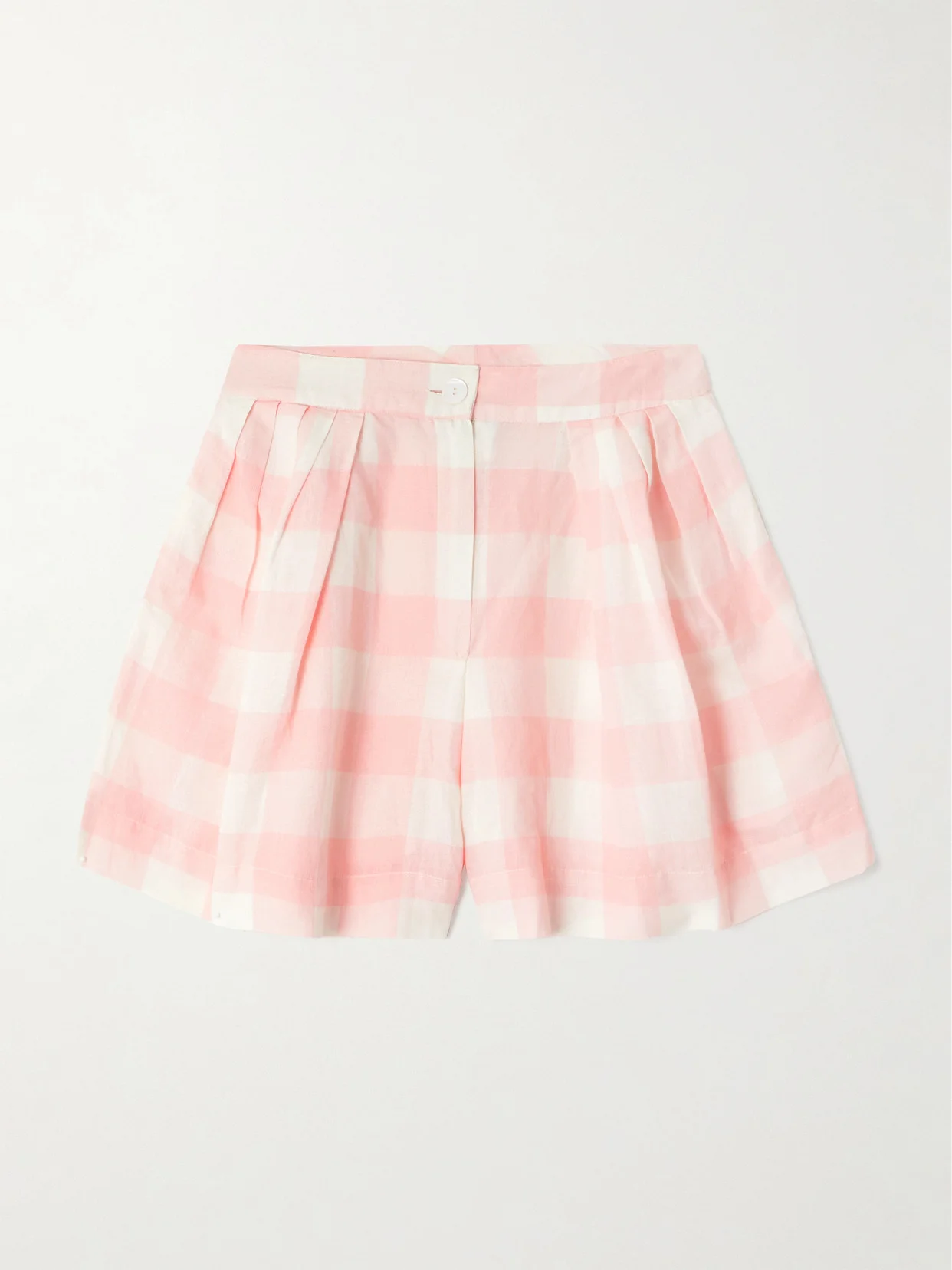 Kenya Pleated Checked Linen And Cotton-blend Shorts