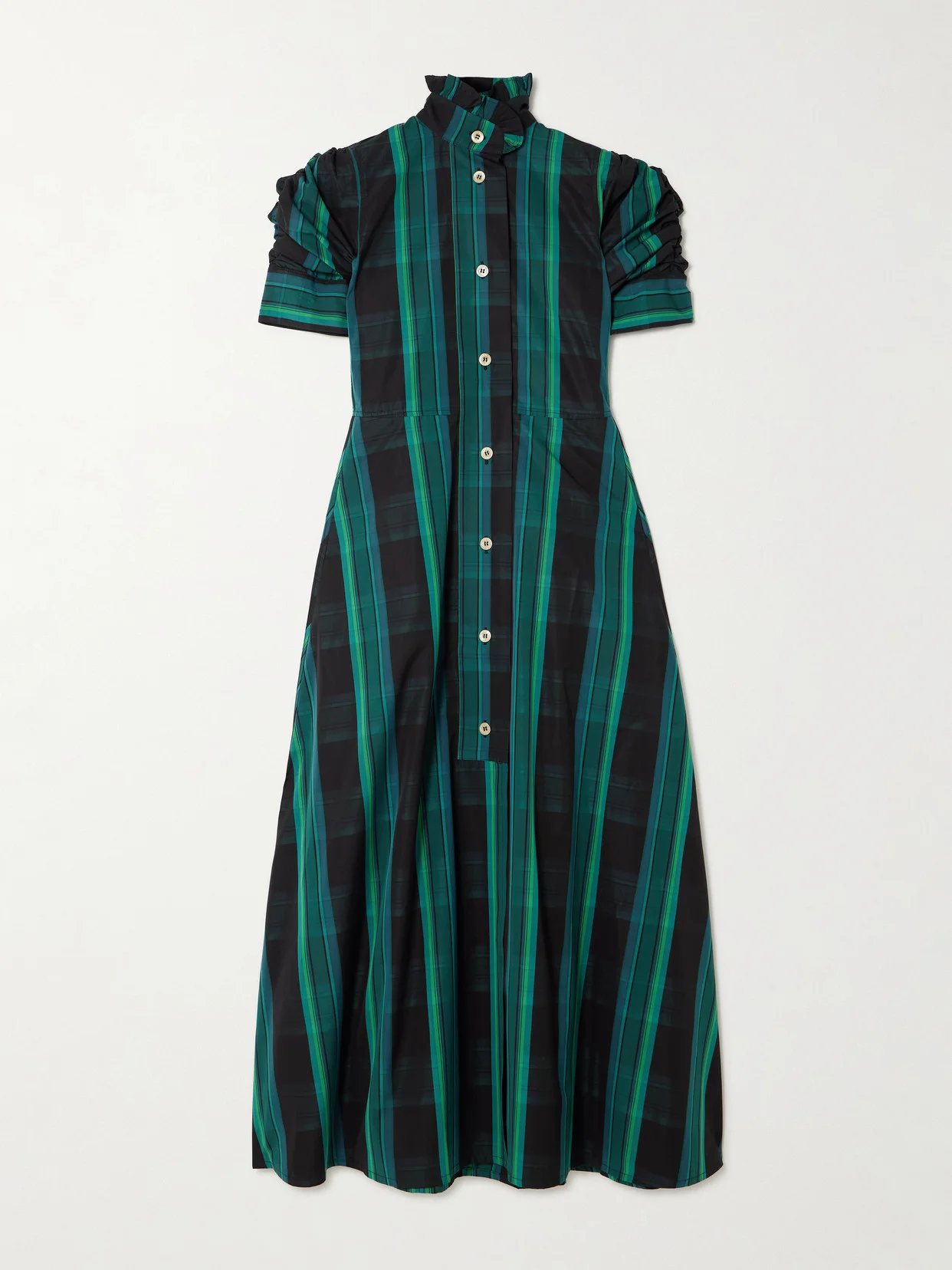 Venetia Ruffled Gathered Checked Cotton-poplin Midi Dress