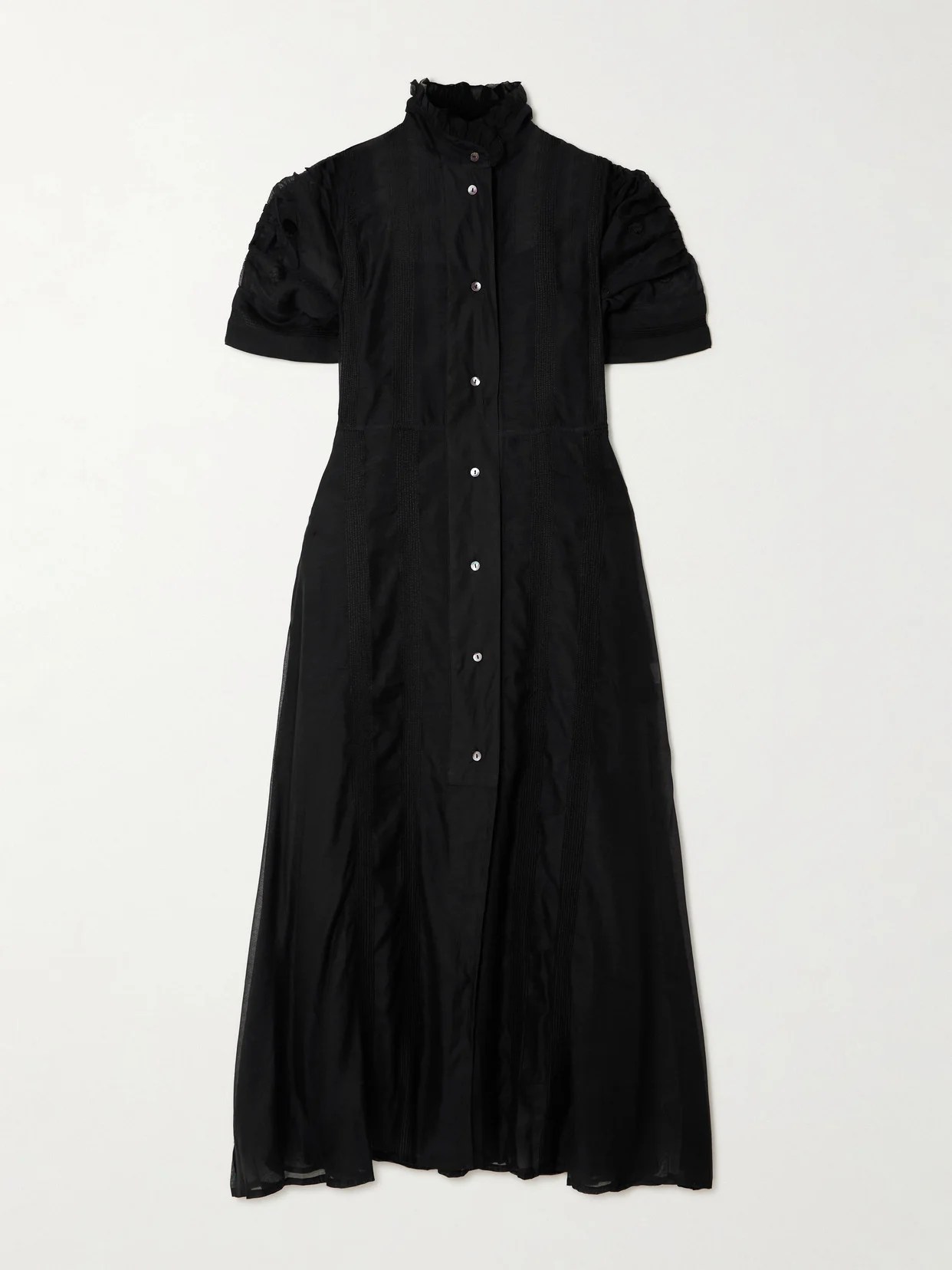 Venetia Ruffled Gathered Embroidered Cotton And Silk-blend Midi Dress
