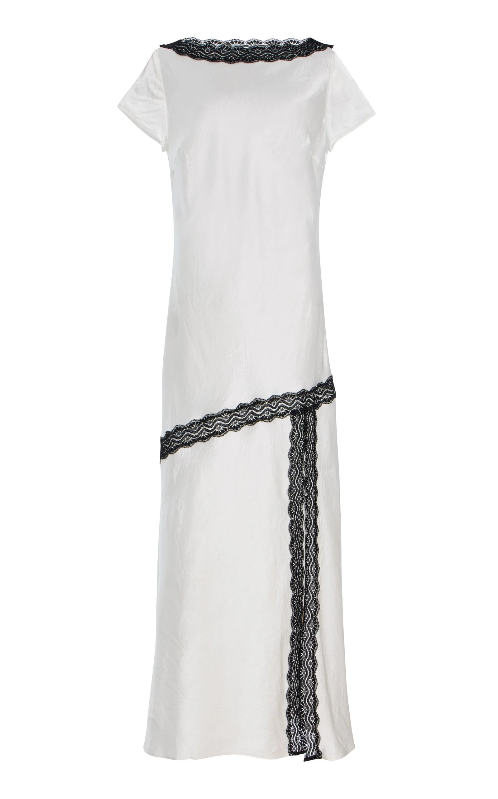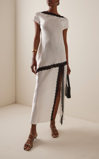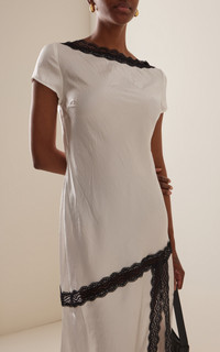 If you’re not already familiar, it’s time to put Merryn Kelly on your radar. The Australian talent has earned a legion of It girl fans with her feminine, edgy take on minimalism. Find it in her latest lineup that marries comfort with 24-hour appeal. Made from crushed satin using sustainably sourced Naia™ fabric, this gown has a tee-like bodice and a bias-cut skirt that's slit up the front. The lace detailing is reminiscent of vintage lingerie. PRODUCT DETAILS - Pre-Fall '25 - Zip fastening - Composition: 100% Naia™ Eastman acetate - Dry clean - Imported