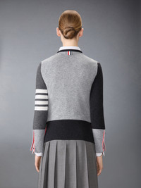 A simple pullover that exudes sophistication. Shades of luxurious cashmere fabric are woven together in patchwork form amidst signature Thom Browne emblems. Our iconic 4-bar detailing pays homage to mid-century collegiate and sports uniforms, embodying discipline, achievement, and tenacity—values at the heart of Thom Browne. Complete the look with our Twill Midi Pleated Skirt. 4-bar detailing Buttoned cuffs with signature striped grosgrain trim Buttoned side vents with signature striped grosgrain trim Signature striped grosgrain loop tab Model is 5'10" (178 cm), wearing size 40 100% Cashmere Made in United Kingdom FKA001F-00011-982