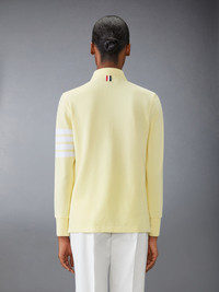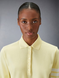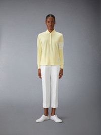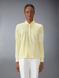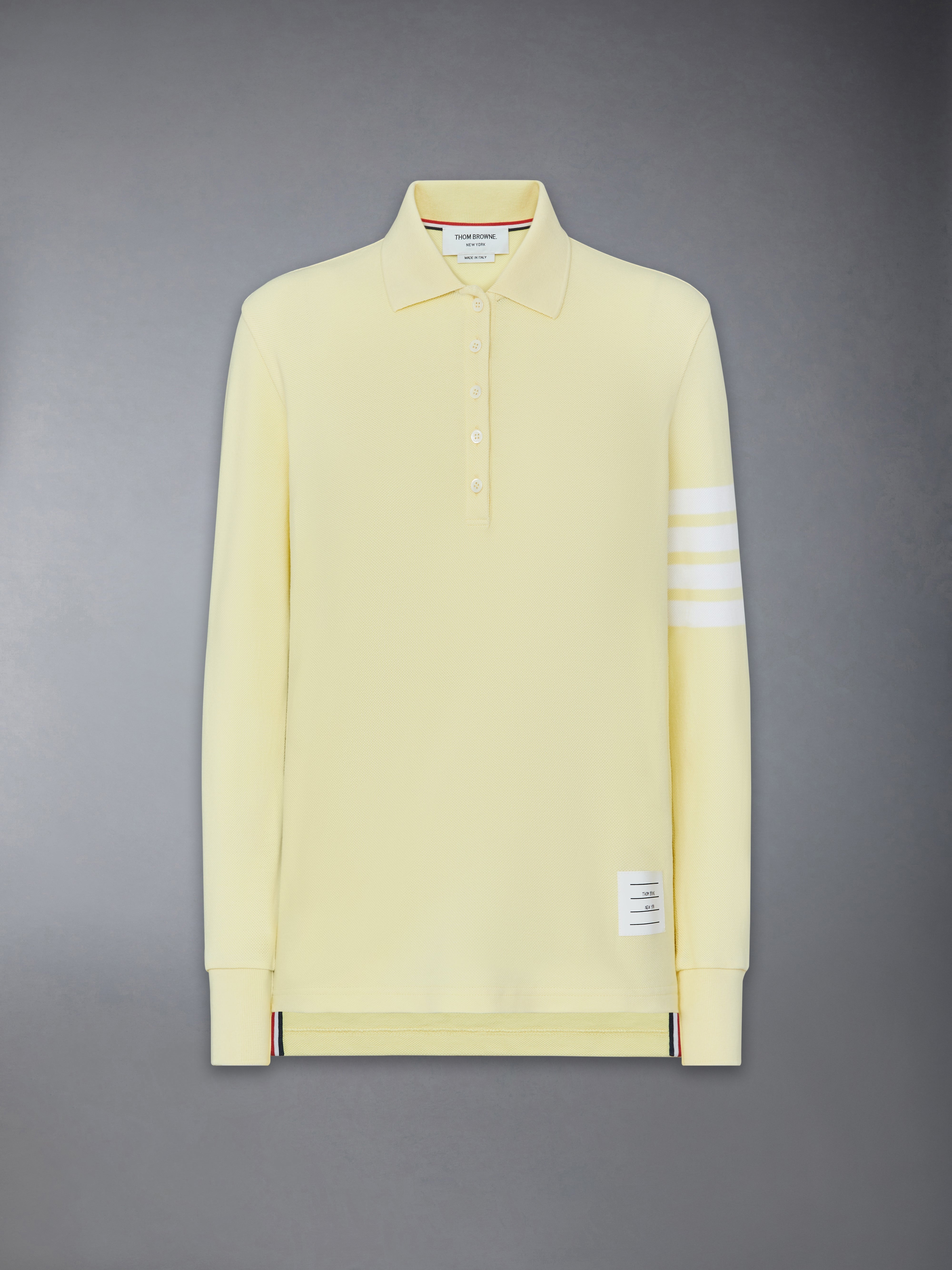 Sporty leisurewear for comfortable activities. Classic long sleeve polo in cotton pique with engineered 4-bar stripe detail. Partial front button placket Spread collar Name tag applique above hem Signature striped grosgrain loop tab at back of neck Model is 5'10" (178 cm), wearing size 40 100% Cotton Made in Italy FJP053G-07976-740