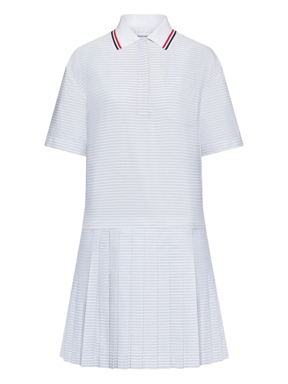 4-bar pleated polo mini dress Highlights - Grey/white - Cotton - Hairline stripe - Pleated skirt - Polo collar - Short sleeves - 4-bar detail Made in Italy Composition Cotton 100% Washing instructions Read Manufacturer Guidelines