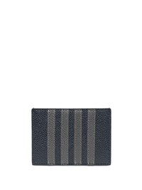 4-Bar stripe leather cardholder Thom Browne's card holder features two brand signatures. Crafted from pebbled leather, it's decorated with subtle 4-Bar stripes and the iconic grosgrain trim. Highlights - Navy blue - Calf leather - Pebbled texture - Signature 4-bar stripe - Grosgrain ribbon trim - Card slots Imported Composition Outer: Calf Leather 100% SIZE & FIT Measurement LENGTH 2.75 in(7 cm) WIDTH 3.93 in(10 cm)