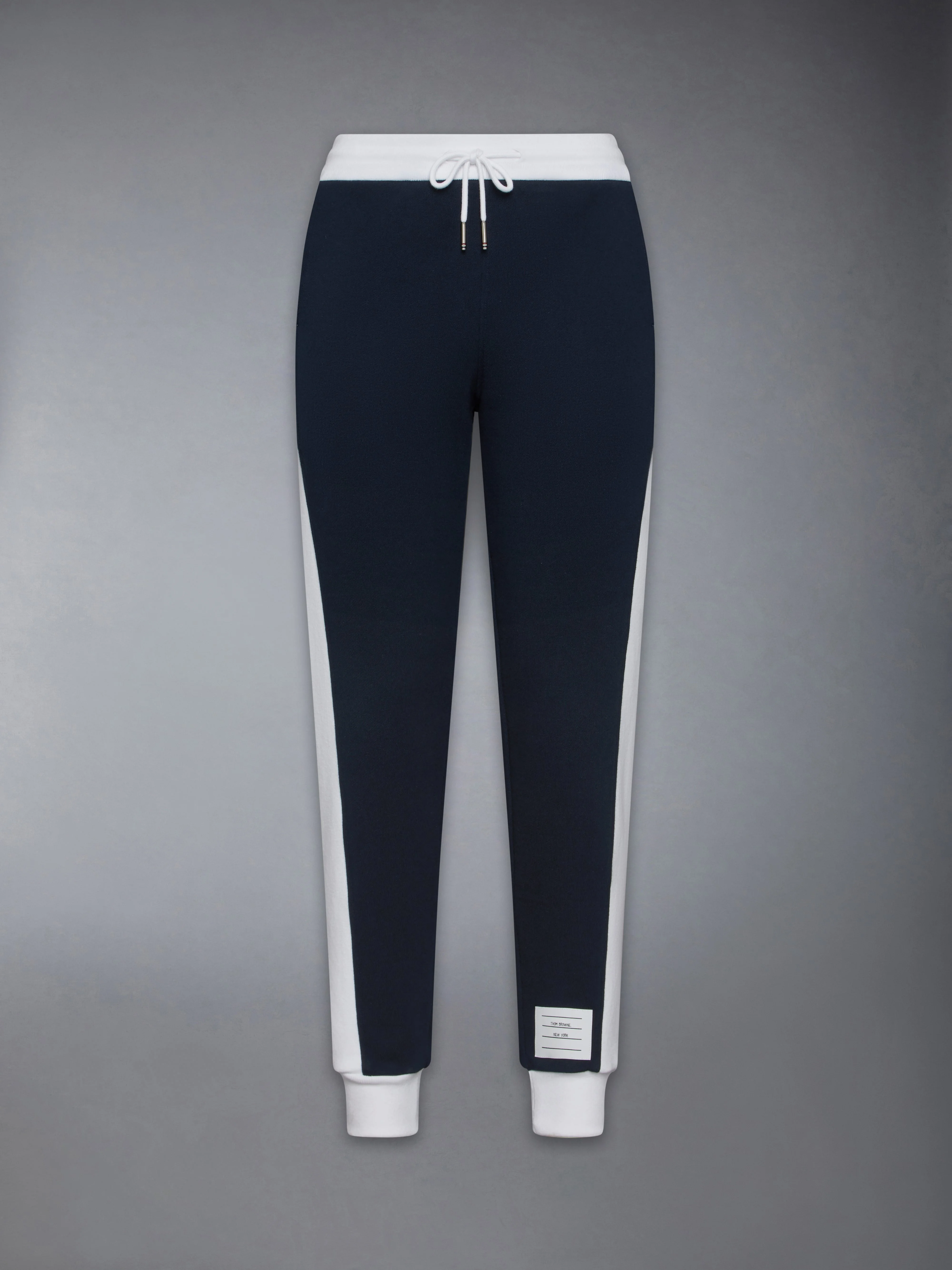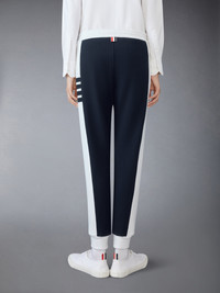 DETAILS & FIT Drawing inspiration from Thom Browne's sporty heritage, these ultra-comfortable sweatpants are perfect for active days or relaxing in style. Made from breathable cotton fabric. Pairs perfectly with our Classic Loopback 4-Bar Zip Up Hoodie. Pull-on Drawstring waistband with silver tone aglets 4-bar detailing Side slip pockets Name tag applique Signature striped grosgrain loop tab Model is 5'10" (178 cm), wearing size 40 100% Cotton Made in Japan FJQ123A-03037-415