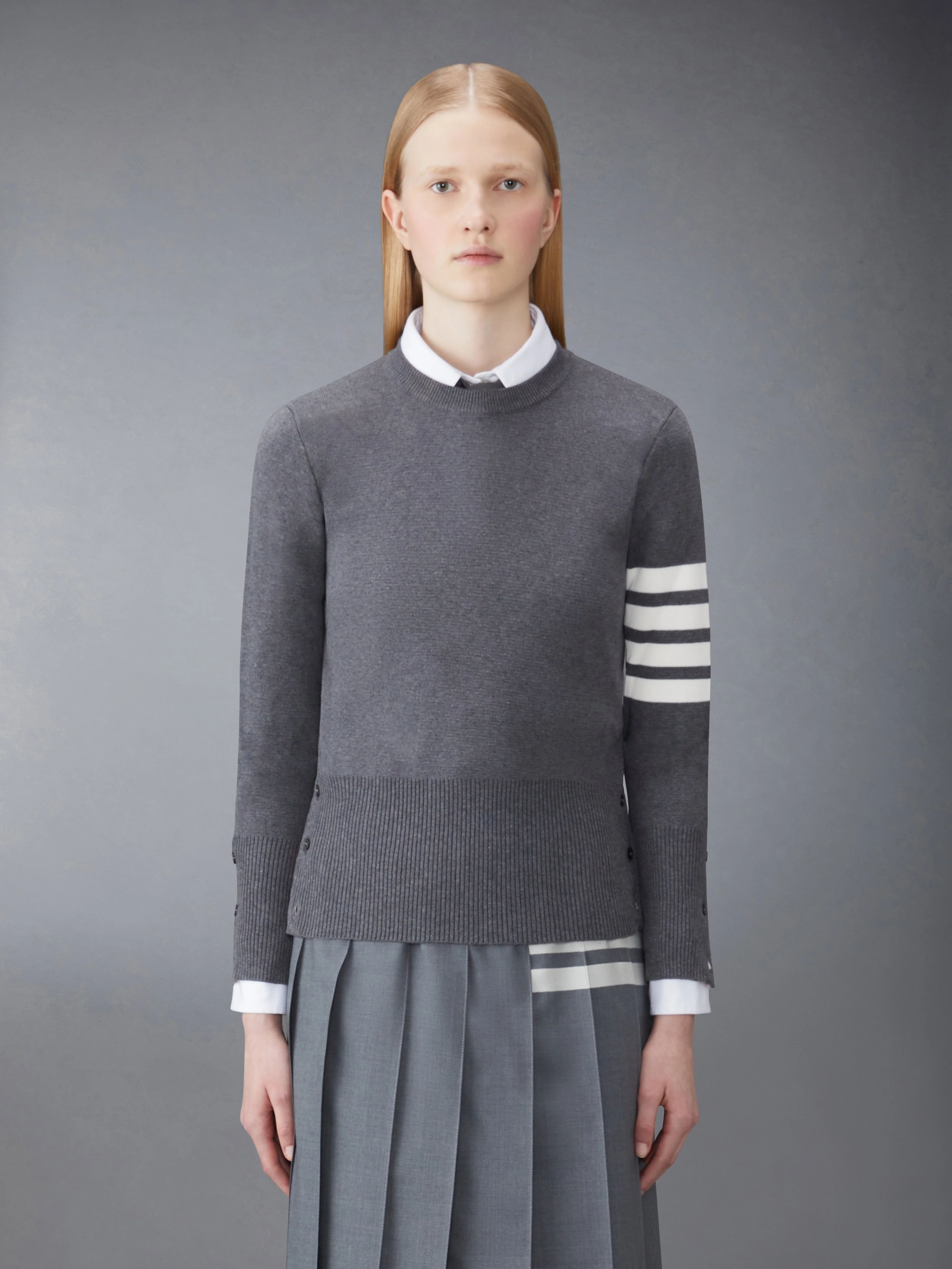 Medium Grey Pullover Cotton Crepe Milano Stitch Crewneck Collar Engineered 4-Bar Stripe Side RWB Button Vents RWB Cuff Vents Signature Grosgrain Loop Tab Model is 5'10"; (178 cm), wearing size 40 FKA239A-00219-035