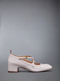 Crafted in a charming light pink hue, these pumps are inspired by American country life and simple joys. Pair them with any of our pleated skirts or signature socks. Buckle strap closure Signature striped grosgrain loop tabs at heels Upper: 100% Lamb Leather Sole: 100% Calf Leather Lining: 100% Goat Leather Lining 2: 100% Lamb Leather Made in Italy FFG205A-00216-641