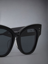 DETAILS & FIT Shiny black acetate Dark grey lens-ar Cateye shape Signature 4-bar Striped enamel temple tips Eco-leather case Lens Width: 52mm Nose Bridge Length: 20mm Temple Length: 148mm 100% Acetate Made in Japan UES925A-G0002-001 - Arm Length: 14.8cm - Bridge Width: 2.0cm - Lens Diameter: 5.2cm