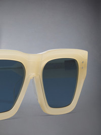These frames reveal volume through fluid form and linear precision. Made in Japan from high-quality acetate, the silhouette reflects Thom Browne’s continual study of proportion and craft, expressed with bold dimensionality. Anti-reflective lenses reduce glare, enhance optical clarity, while signature 4-bar detailing and tricolor enamel temple tips complete the design. Rectangular shape Signature 4-bar Striped enamel temple tips Eco-leather case Frame: toasted yellow acetate Hinges: silver Lenses: dark navy-ar Lens Width: 52mm Nose Bridge Length: 18mm Temple Length: 148mm 100% Acetate Made in Japan UES947A-G0002-735