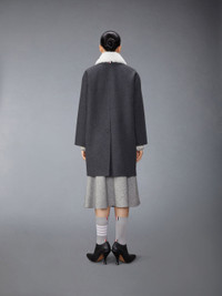 DETAILS & FIT This luxurious jacket is the pinnacle of cold weather sophistication, padded with warm shearling at the collar and hidden zip closure. Front button closure Hidden zip closure 2 Front flap pockets Single buttoned back vent Interior pocket and name tag Signature striped grosgrain loop tab Model is 5'10" (178 cm), wearing size 40 95% Wool, 5% Cashmere Combo1: 100% Shearling Leather Made in ITALY FOC859S-F0069-035