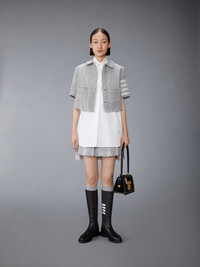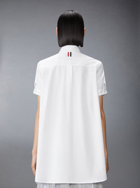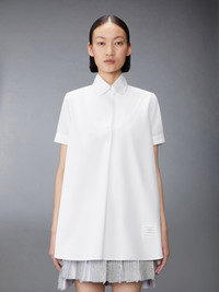 This airy, breathable shirt is made of our signature lightweight poplin fabric and features an exaggerated bow at the collar. Inspired by the charm of American country life, it can be worn with a simple pair of trousers or with our Solid Tweed 4-Bar Cropped Shirt Jacket and Solid Tweed 4-Bar Pleated Mini Skirt. Partial front button closure Name tag applique Signature striped grosgrain loop tab Model is 5'10" (178 cm), wearing size 40 100% Cotton Made in Italy FLL209A-03113-100
