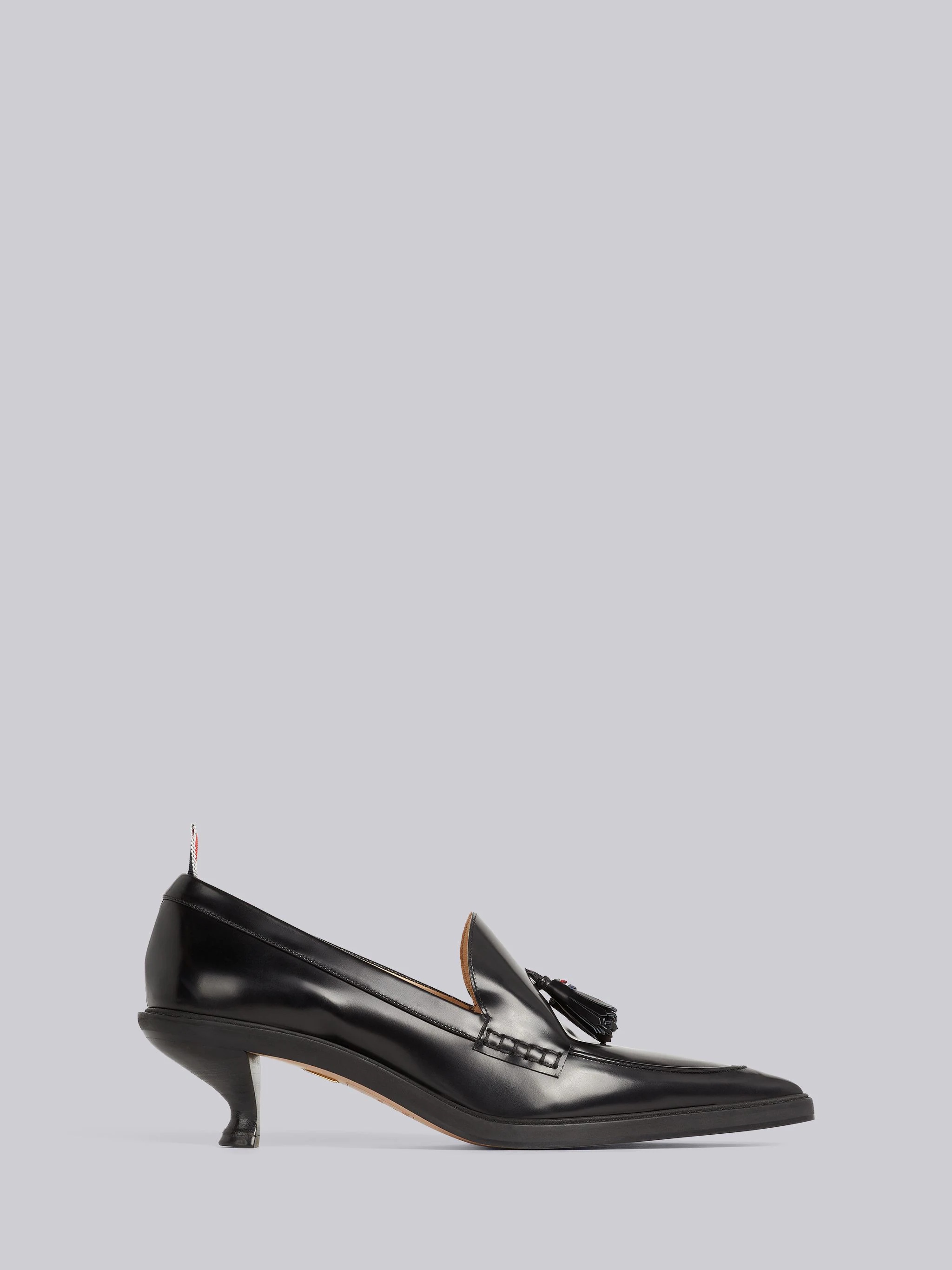 Black Calf Leather 50mm Curved Heel Tassel Loafer