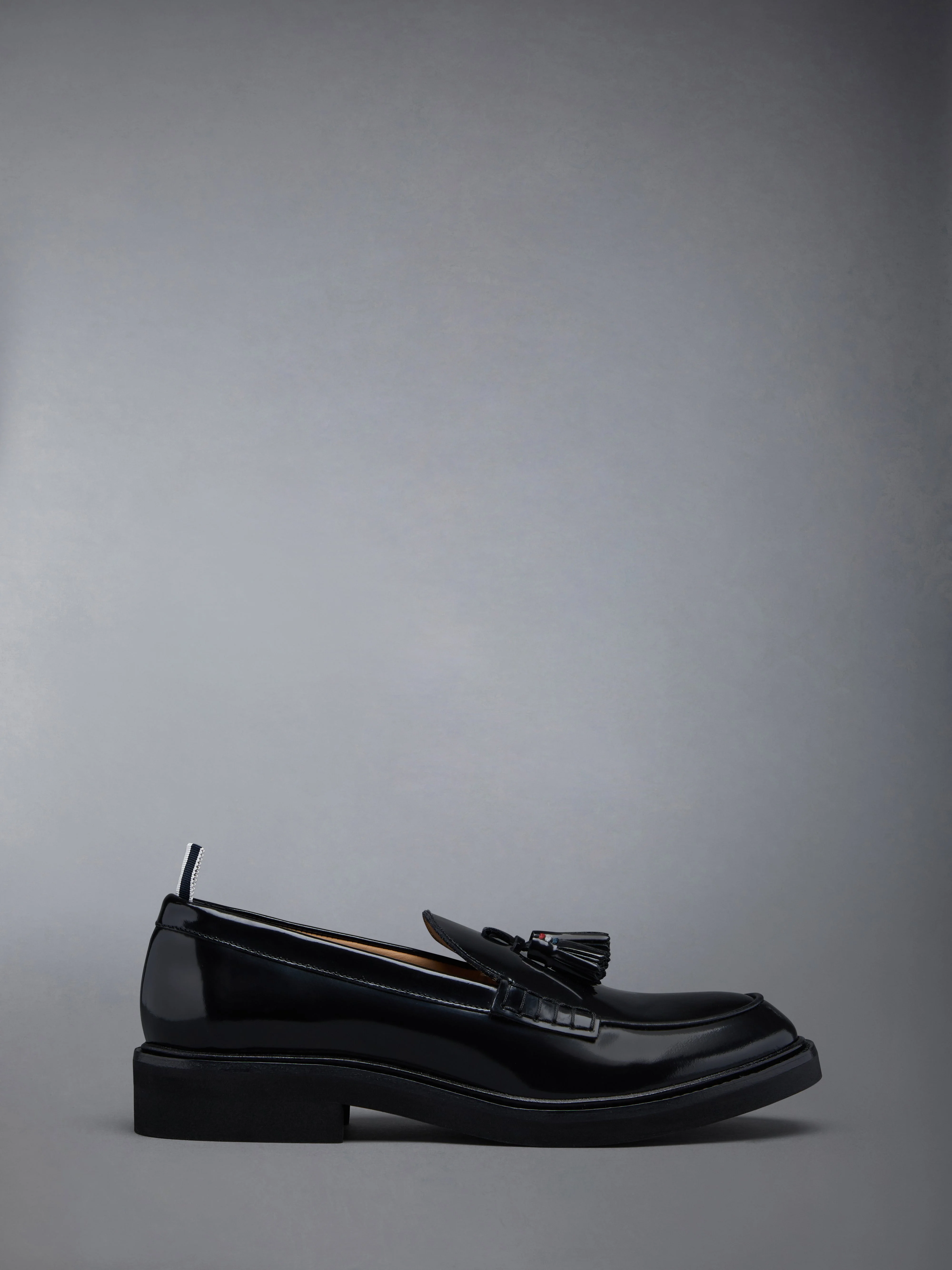 DETAILS & FIT Our Polished Calf Tassel Loafer is a traditional silhouette crafted with the highest quality of classic shoemaking. Microporous sole Leather lining Signature striped grosgrain loop tabs at heels Upper: 100% Calf Leather Sole: 100% Microporous Lining: 100% Calf Leather Made in Italy FFD104B-07524-001