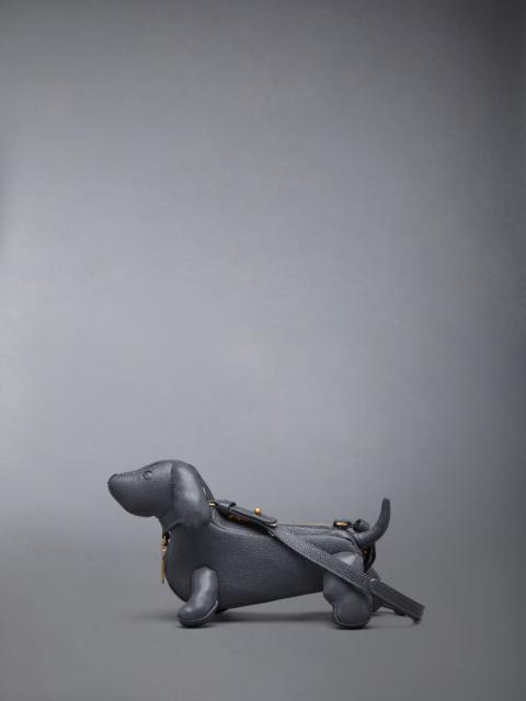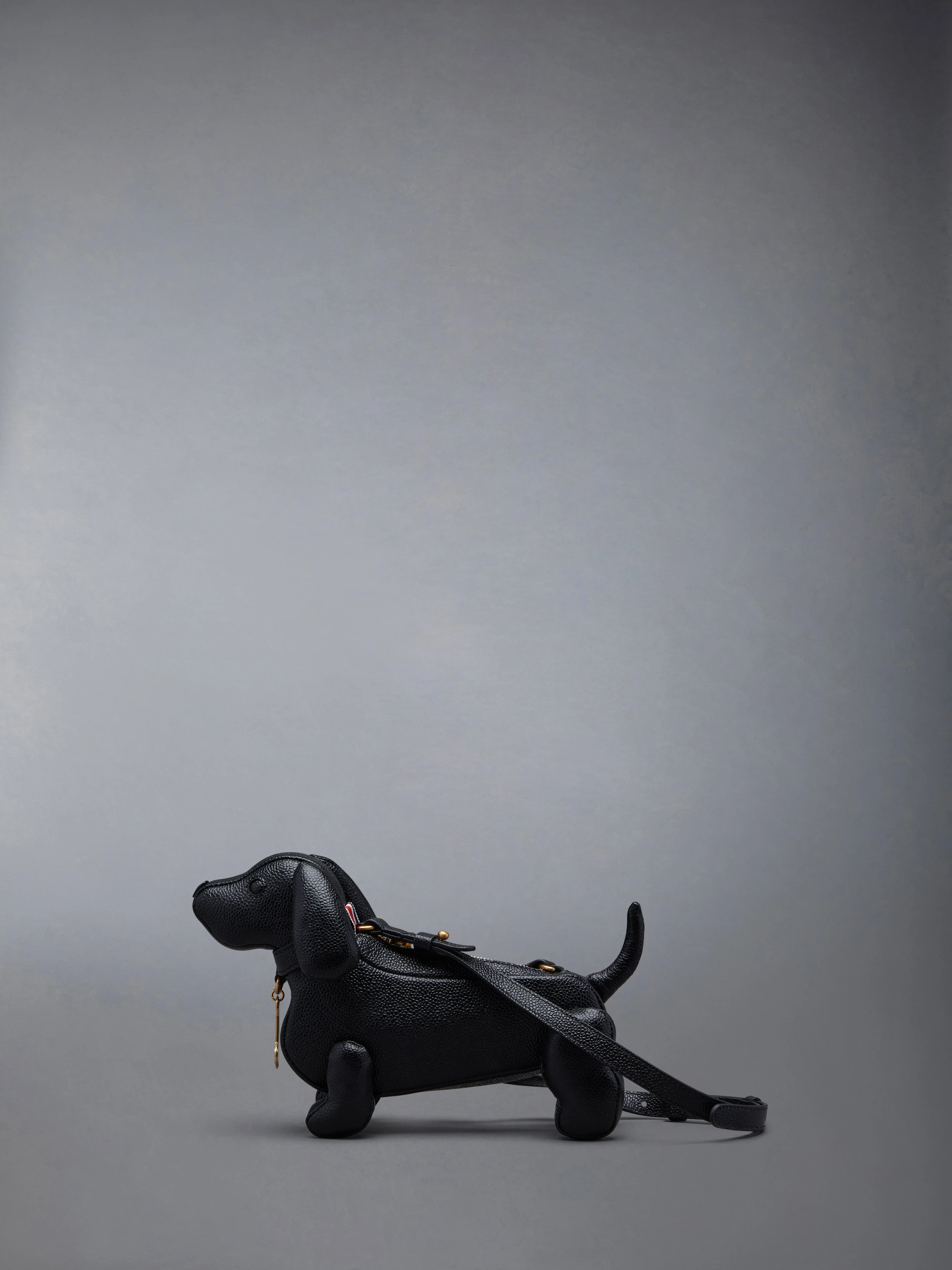 DETAILS & FIT Our Pebble Grain Mini Hector Crossbody Bag. Heralded as the most famous dog muse in fashion, Thom Browne’s very own dachshund Hector served as the inspiration behind this quintessential piece. Brass zip top closure Leather crossbody strap Brass bone charm Striped lining Signature striped grosgrain loop tab at back of neck Measures W26.5 x H16 x D8cm 100% Calf Full Grain Leather Lining: 100% Polyester Made in Italy FAP313A-00198-001